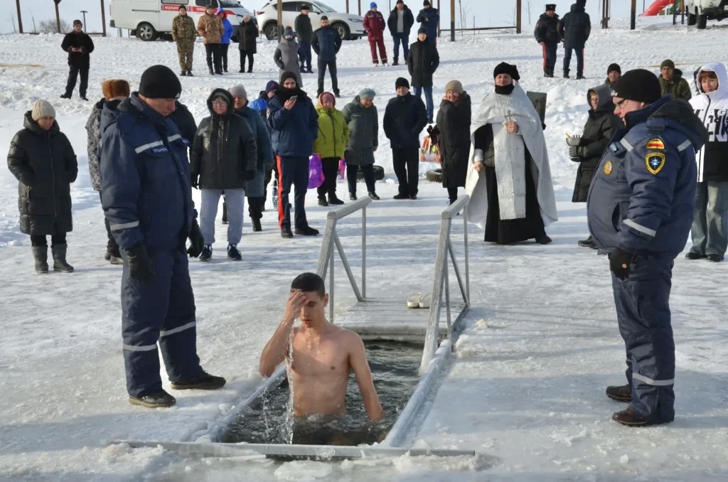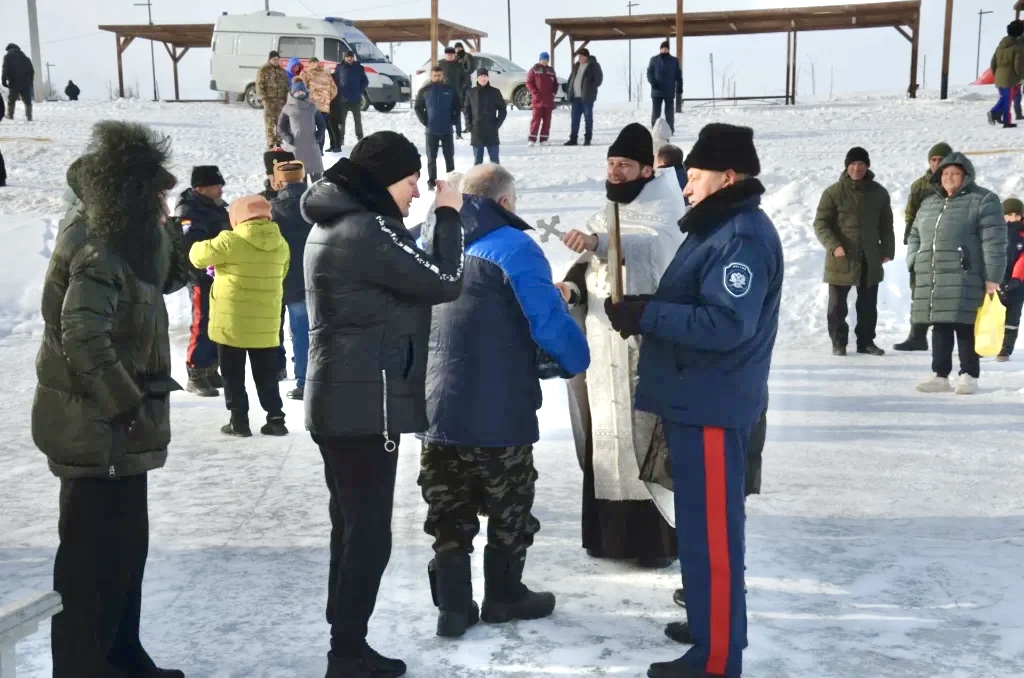 По окончании богослужения священник поздравил всех присутствующих с праздником Богоявления и обратился к собравшимся с пастырским словом, после чего верующие совершили погружение в освящённые воды.