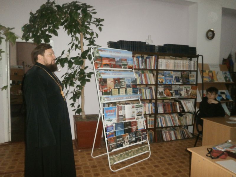 17 февраля на базе городской библиотеки им. Горького в рамках совместного проекта «Наследие» Отдела религиозного образования, МУОО и Отдела по работе с молодежью администрации города Донецка состоялся патриотический час «Защита Отечества – святой подвиг». Мероприятие было посвящено Дню защитника Отечества и освобождению Ростовской области от немецко-фашистских захватчиков.