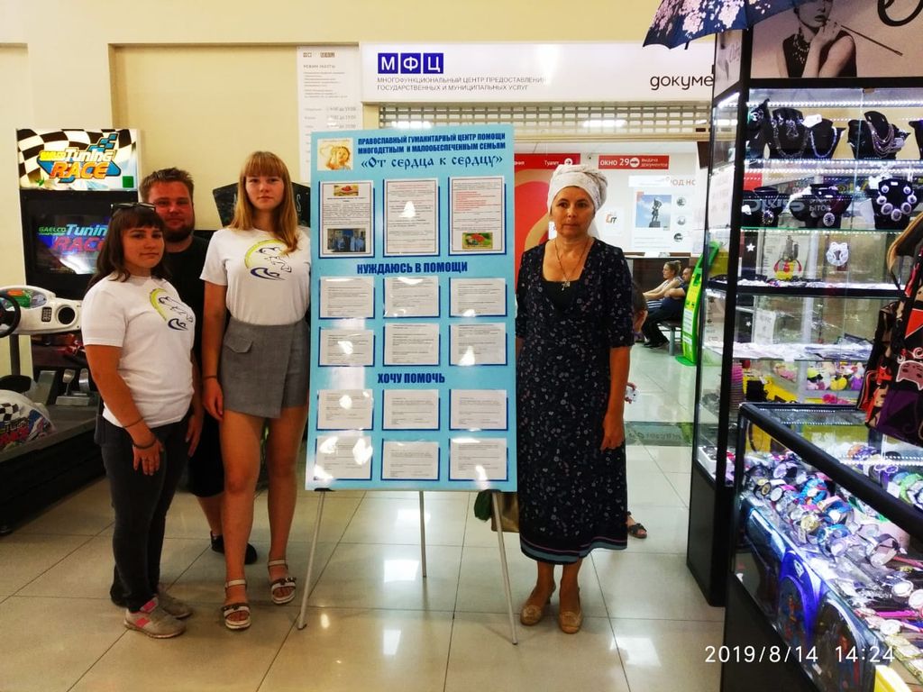 По благословению настоятеля храма в честь Донской икноы Божией Матери г. Новошахтинска, благочинного приходов Новошахтинского округа протоиерея Романа Амплеева, по инициативе Сестер милосердия Донского храма и активистов добровольческой православной школы «Дельфин» Центр гуманитарной помощи «От сердца к сердцу» при приходе Донской иконы Божией Матери проводит полезную, добрую и нужную акцию «От сердца к сердцу». В организации и проведении мероприятия оказали помощь Администрация г. Новошахтинска, ТЦ «Новошахтинск Молл», МФЦ города, Редакция газеты «Знамя шахтера» и другие отзывчивые и неравнодушные жители города.