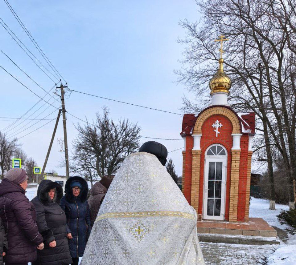 Священник сердечно поздравил собравшихся жителей с праздником Крещения Господня. Поскольку в населенном пункте нет храма, чин великого освящения воды был совершен по сложившейся доброй традиции возле местной часовни, освященной в честь Святой Троицы.