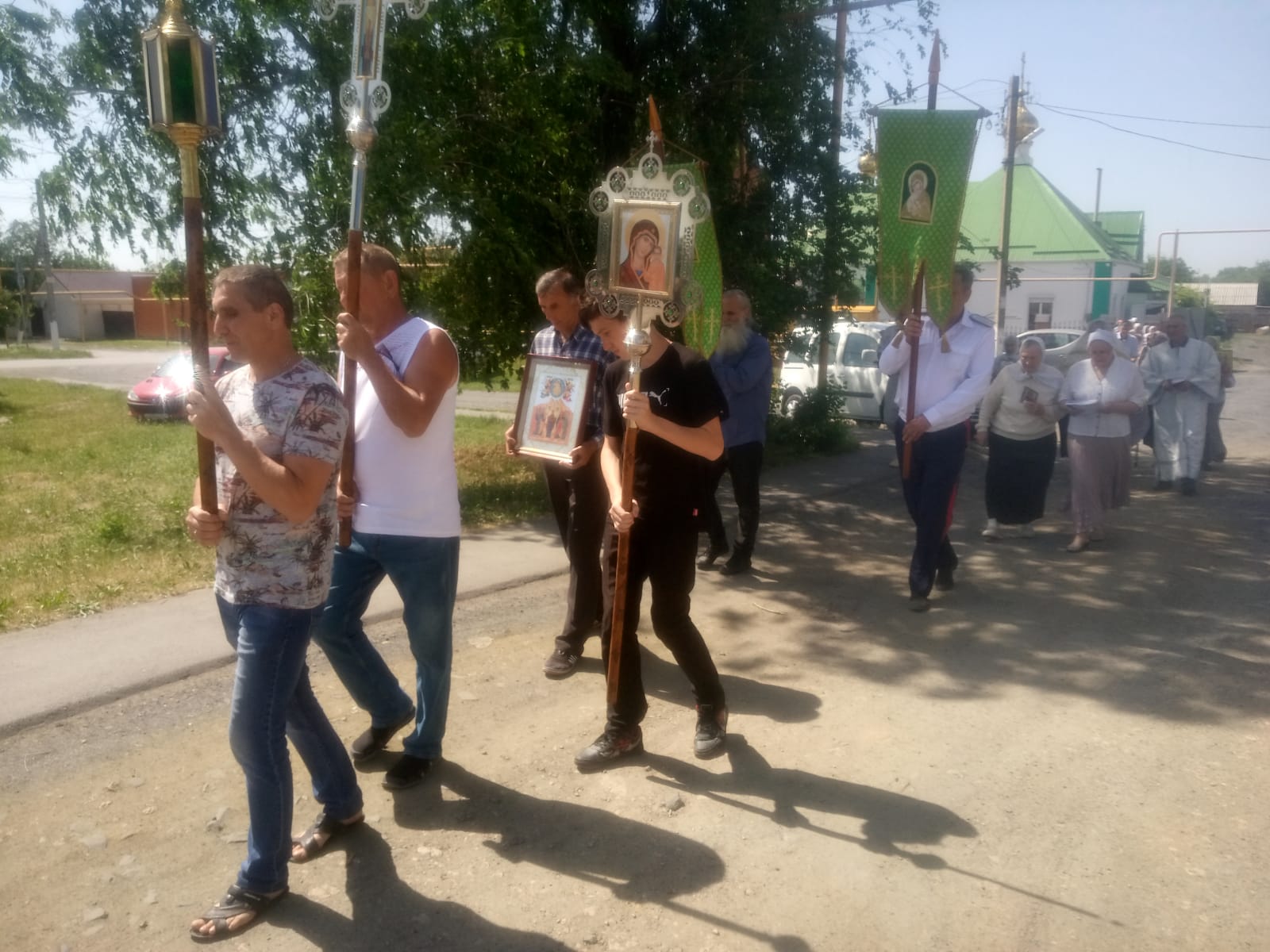В день престольного праздника храма Вознесения Господня слободы Красюковской Октябрьского района совершена Божественная литургия, после которой настоятель храма иеромонах Николай (Намётышев) и прихожане совершили крестный ход к памятному кресту, установленному на месте разрушенного в годину лихолетия местного храма.