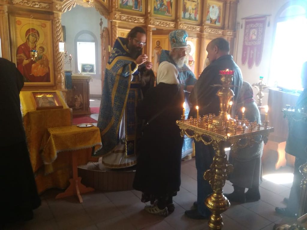 Наместник и шахтинские священники совершили в монастырском Георгиевском храме Божественную литургию, за которой многие паломники причастились Святых Христовых Таин. Шахтинские паломники также помолились в Покровском храме обители, совершили омовение в купели монастырского святого источника и посетили возрождаемый Николо-Вознесенский храм села Поповка, находящийся рядом с епархиальной обителью.