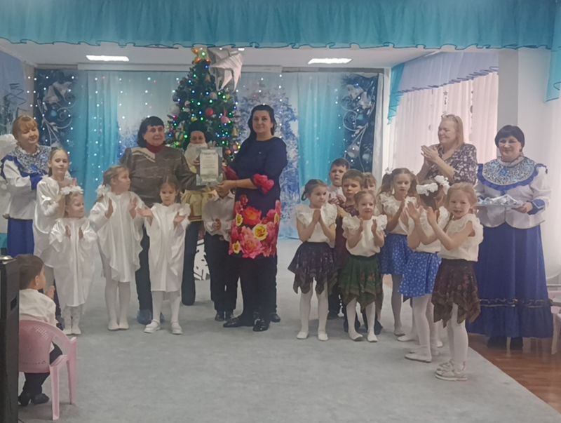 Праздник открыла помощник по религиозному образованию Р.И. Фартанова и вручила грамоту детскому саду «Соловушка», занявшему I место в городском открытом фестивале ИЗО «Крещенская звезда».