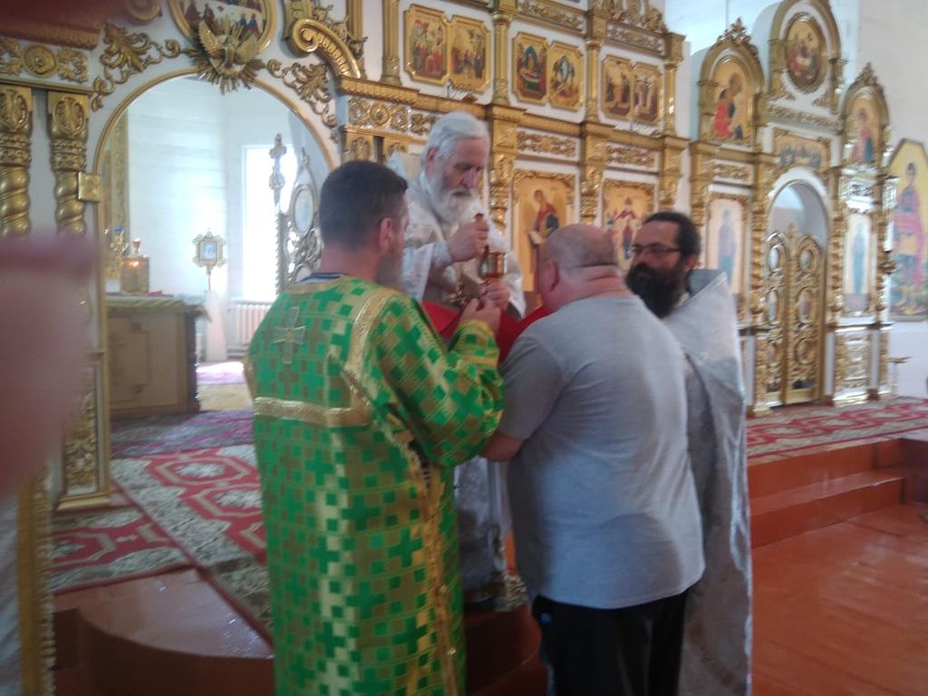 Наместник и шахтинские священники совершили в монастырском Покровском храме Божественную литургию, за которой многие паломники причастились Святых Христовых Тайн. Шахтинские паломники также помолились в Георгиевском храме обители, совершили омовение в купели монастырского святого источника.