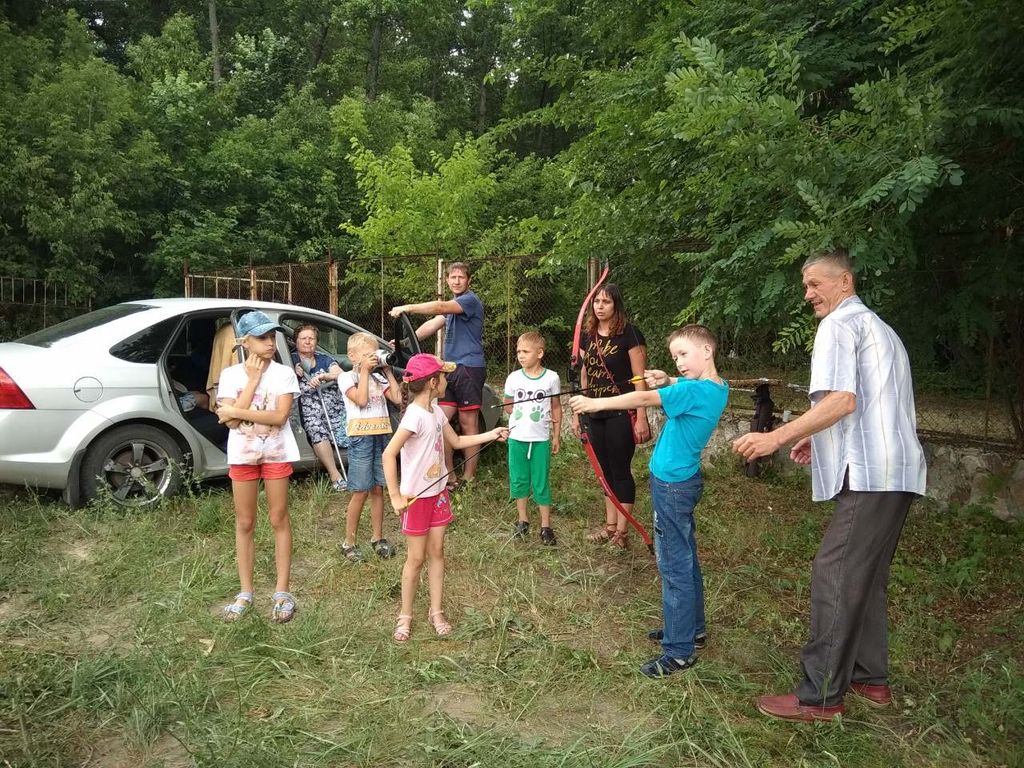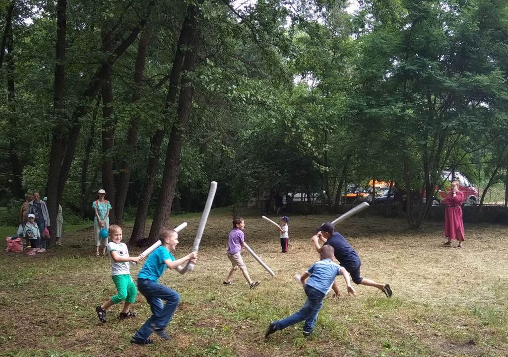 На поляне, под сенью деревьев, казаки и работники храма накрыли столы. Для маленьких прихожан были проведены веселые соревнования со сражением на мягких мечах и стрельбой из лука.