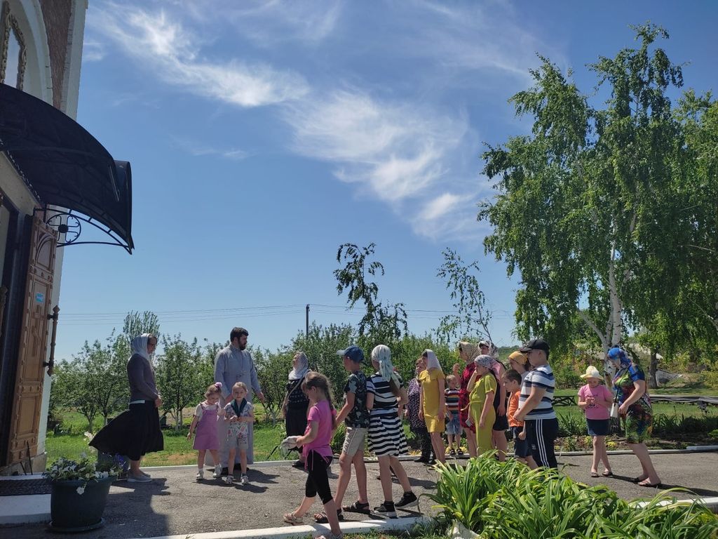В попразднство Вознесения Господня, в дни школьных каникул, воспитанники воскресной школы Свято-Пантелеимоновского храма г. Миллерово, во главе с преподавателем Натальей Джугановой, посетили Свято-Покровский храм сл. Никольская с дружественным визитом.