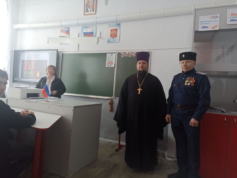В МБОУ Кудиновская СОШ прошёл открытый урок Памяти, посвящённый Дню памяти жертв геноцида казаков. На мероприятии присутствовали настоятель храма Архистратига Михаила хутора Ёлкин иерей Анатолий Минаев, атаман хутора Ёлкин С.А. Подзолкин, учащиеся 10-11 классов и педагоги.