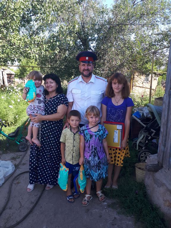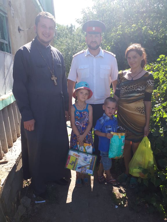 Благочинный приходов Чернышевского благочиния иерей Александр Левчик, атаман Верхне-Донского казачьего округа М.М. Алейников и помощник настоятеля по социальной работе Г.А. Лукьянова в рамках ежегодной социальной акции «Соберем ребенка в школу» оказали помощь малоимущим и многодетным семьям, проживающим на территории Боковского района.