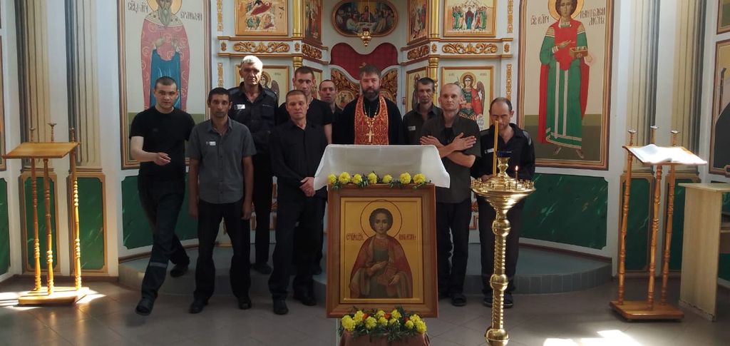 В день памяти великомученика и целителя Пантелеимона иерей Андрей Ковалев совершил Божественную литургию в храме в лечебном исправительном учреждении 20 г. Шахты