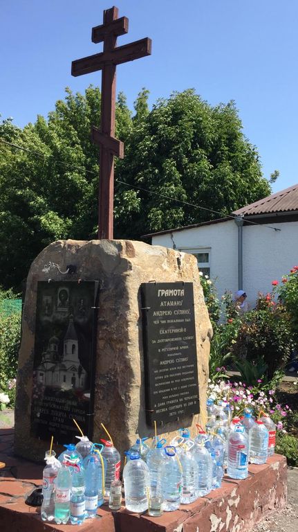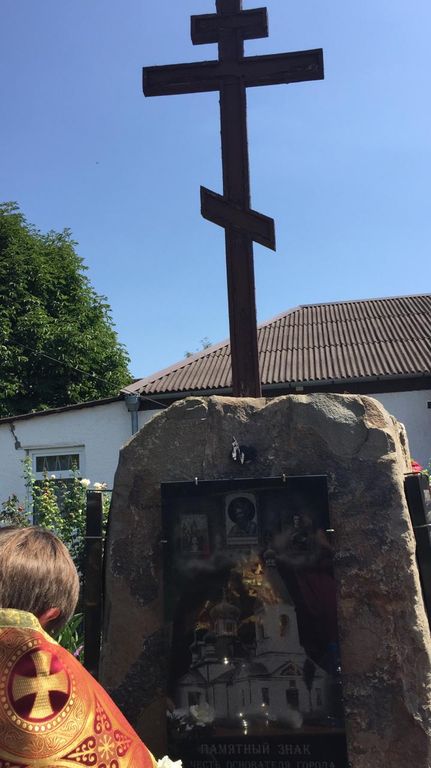 По благословению благочинного иерея Владислава Касьянова иеромонах Никон (Синюшки), иерей Сергий Столяров и иерей Георгий Кофанов соборно совершили водосвятный молебен на месте разрушенного храма, где установлен поклонный крест и памятный знак.