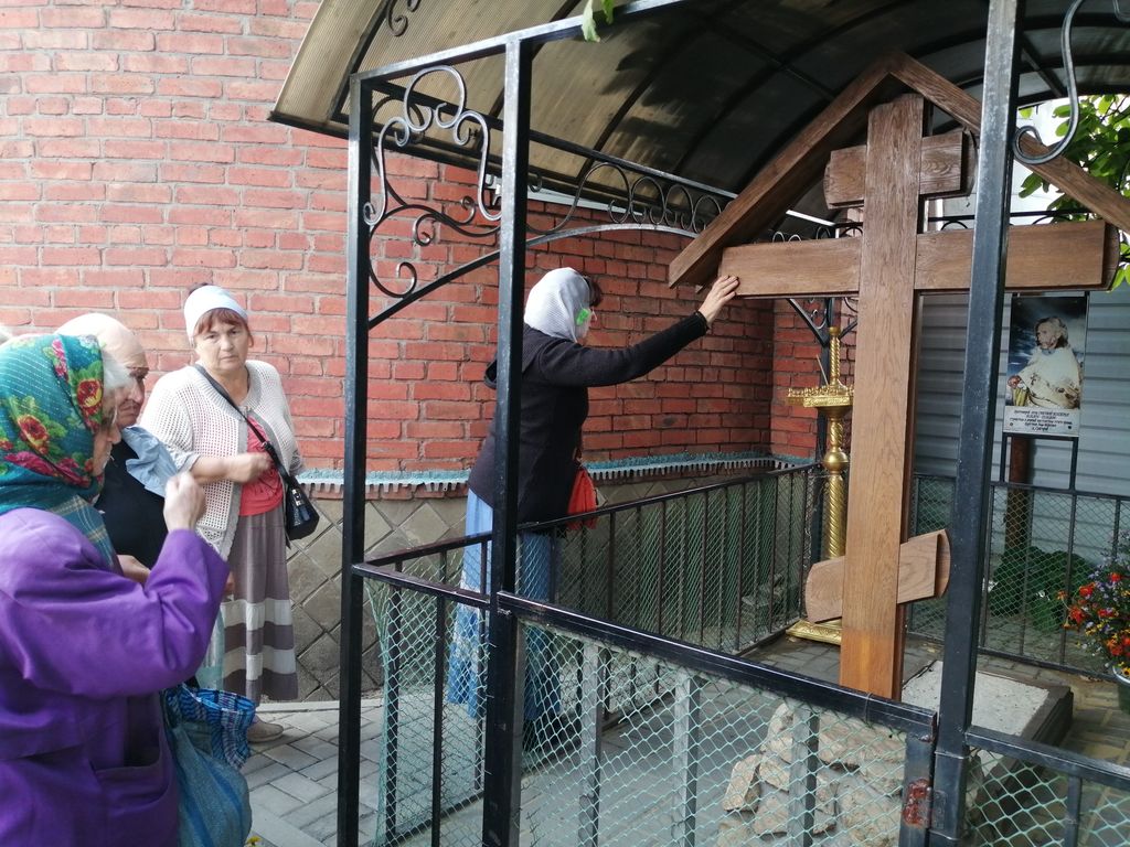 Отобедав, паломники с молитвами посетили место захоронения первого настоятеля прихода, протоиерея Григория Келеберда, послушали удивительный рассказ прихожанки Валентины Враковой о жизни священника, его доброте к простым людям, необыкновенной прозорливости и тех усилиях, которые предпринимал батюшка для возведения церкви и укрепления православной веры на миллеровской земле.