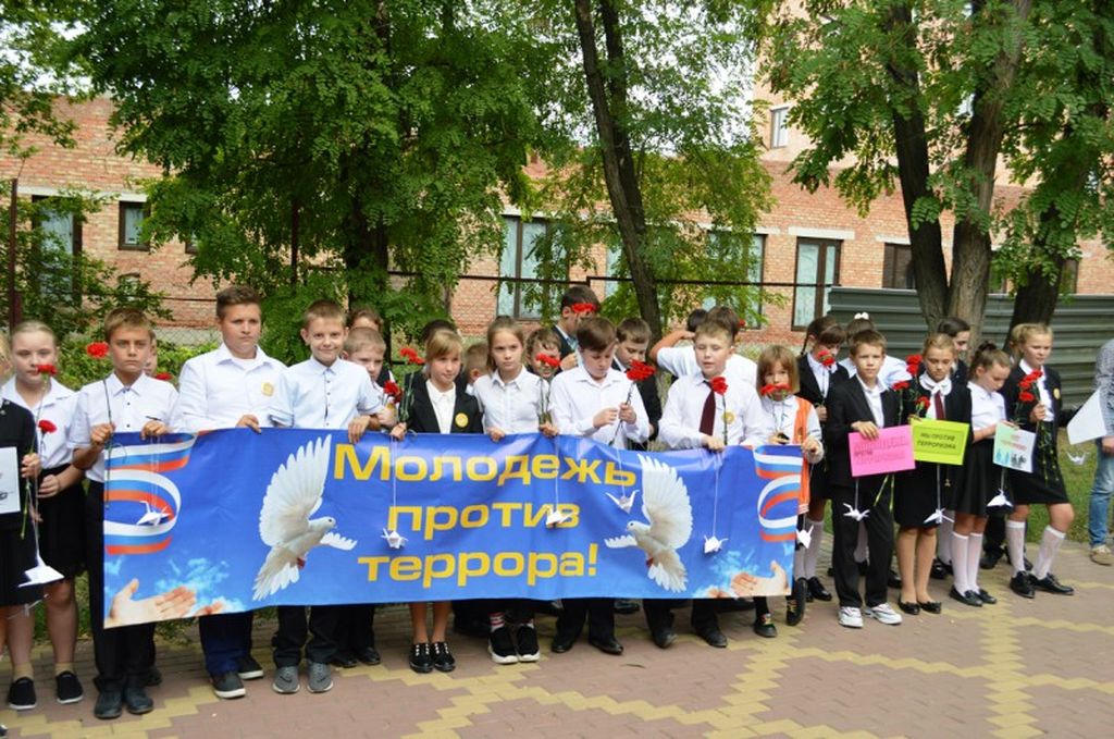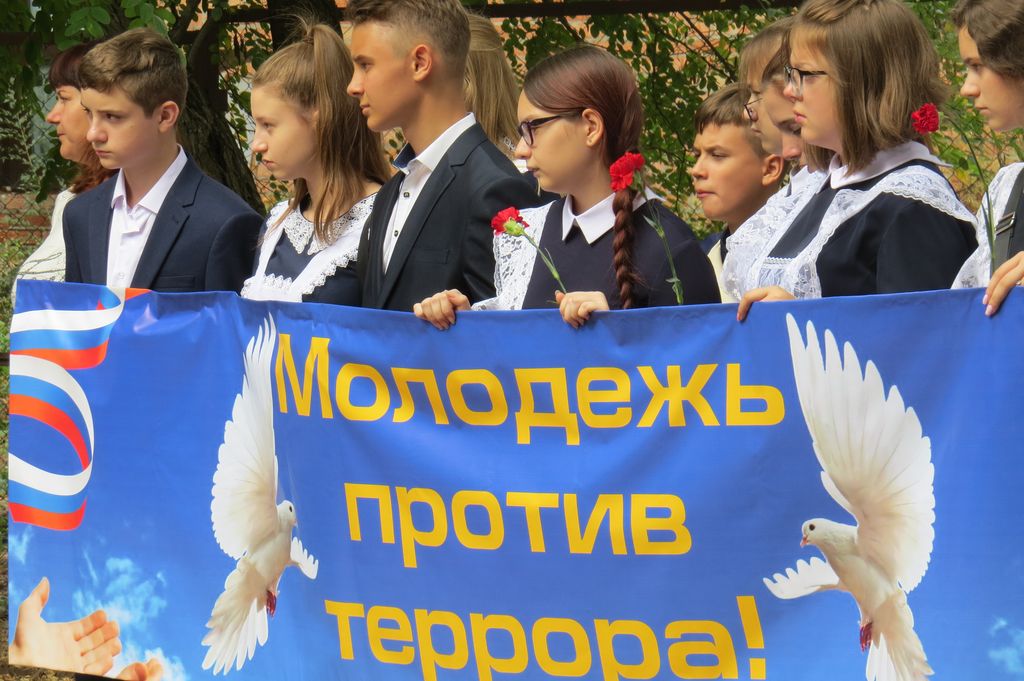 Учащиеся общеобразовательных учреждений и жители поселения пришли почтить память погибших в теракте 15-летней давности в школе Беслана.