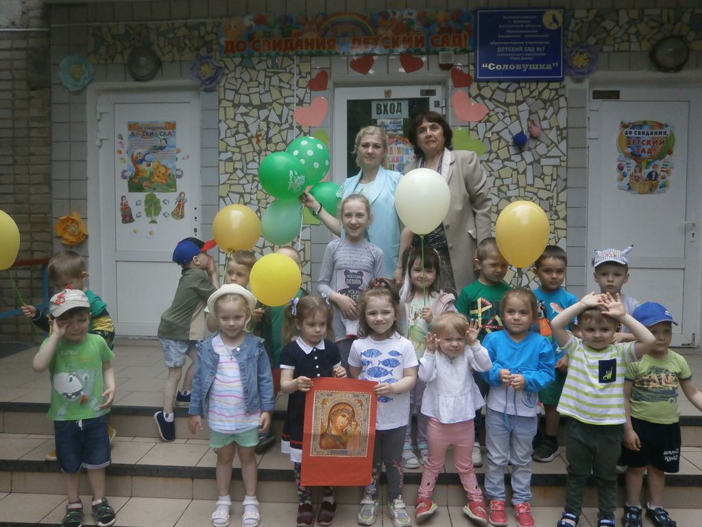 Затем состоялся праздник, в ходе которого воспитанники детского сада «Соловушка» пели песни и читали стихи. Каждая группа получила в подарок книги, предоставленные храмом Державной иконы Божией Матери.