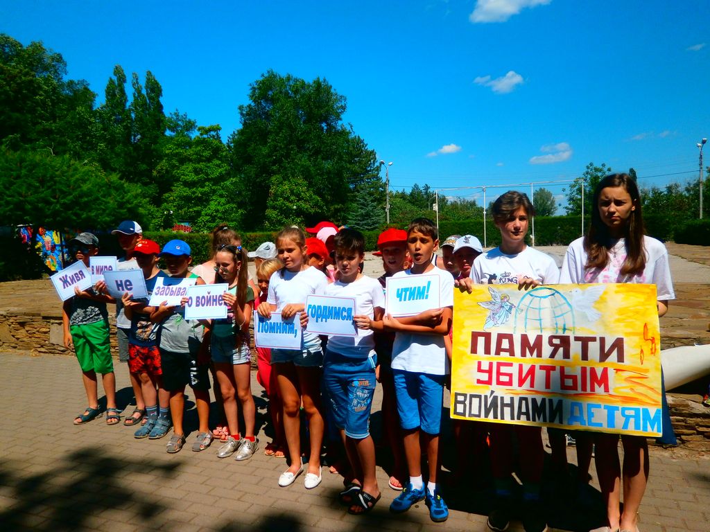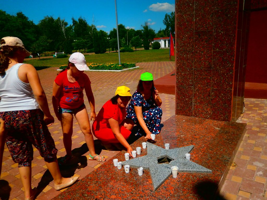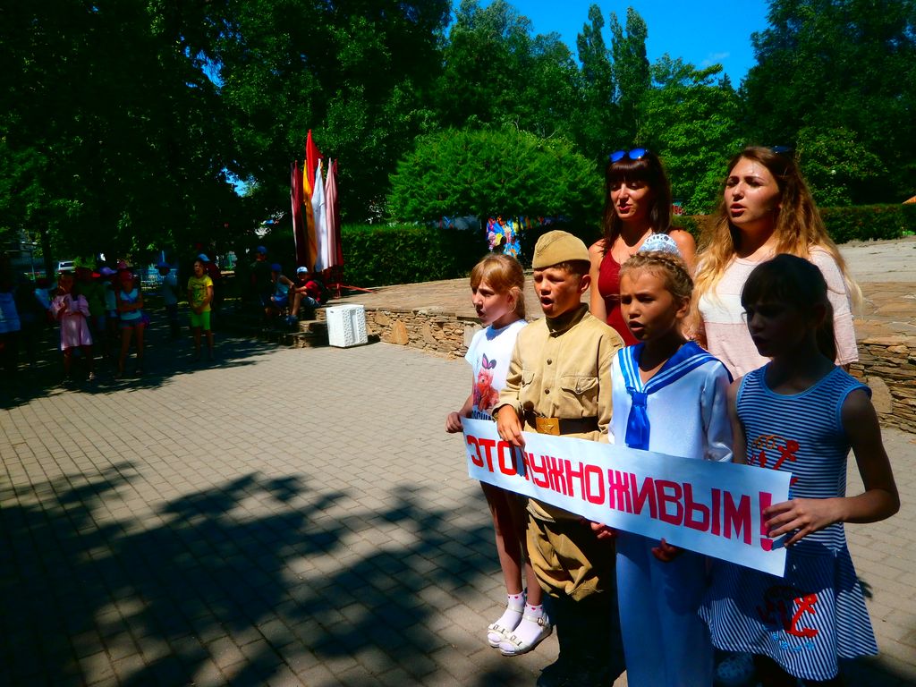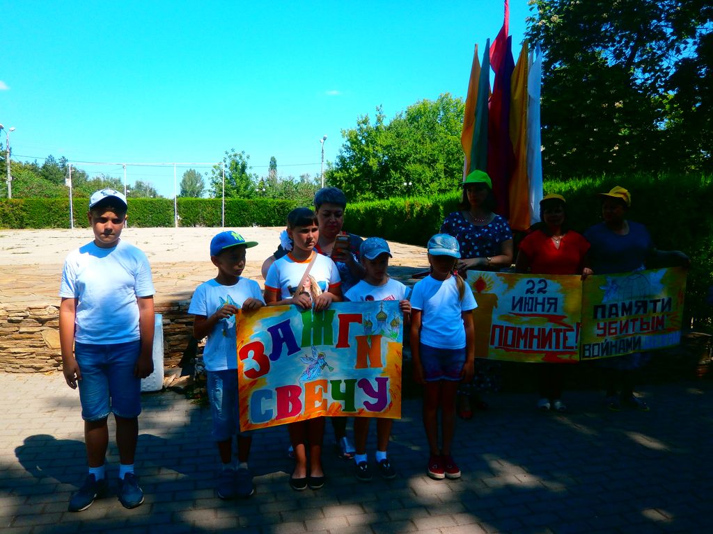 Мероприятие посвящено скорбной исторической дате нашего Отечества – 22 июня 1941 года. В нем приняли участие воспитанники летних школьных лагерей десяти общеобразовательных школ, молодежный отдел Донецкого благочиния, студенты- волонтеры, молодежный родительский духовный клуб «Свет добра» и духовно-просветительский клуб «Веков связующая нить» при детской библиотеке-филиале им. А. Гайдара.