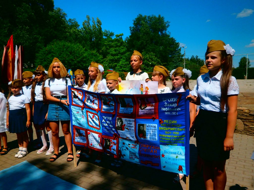 Право встать первыми на вахту памяти получил отряд лагеря МБОУ СОШ № 1 имени героя Великой Отечественной войны Гриши Акулова, отдавшего без колебания свою жизнь за наше счастливое будущее. Каждый отряд стихами вдохновенно восславил подвиги героев, выражая глубокую благодарность тем, кто не одно поколение нашей страны спас от горячего дыхания войны.