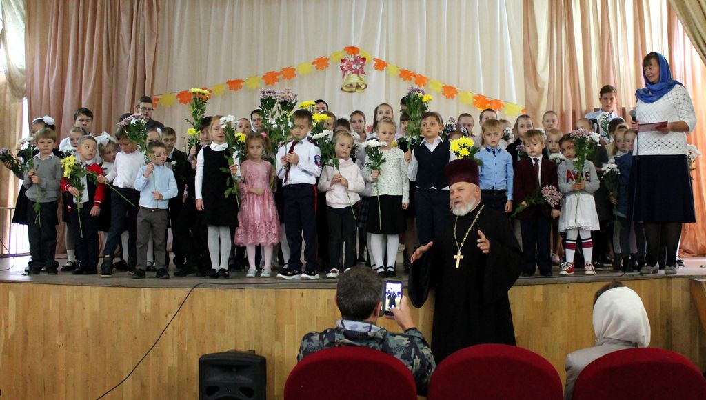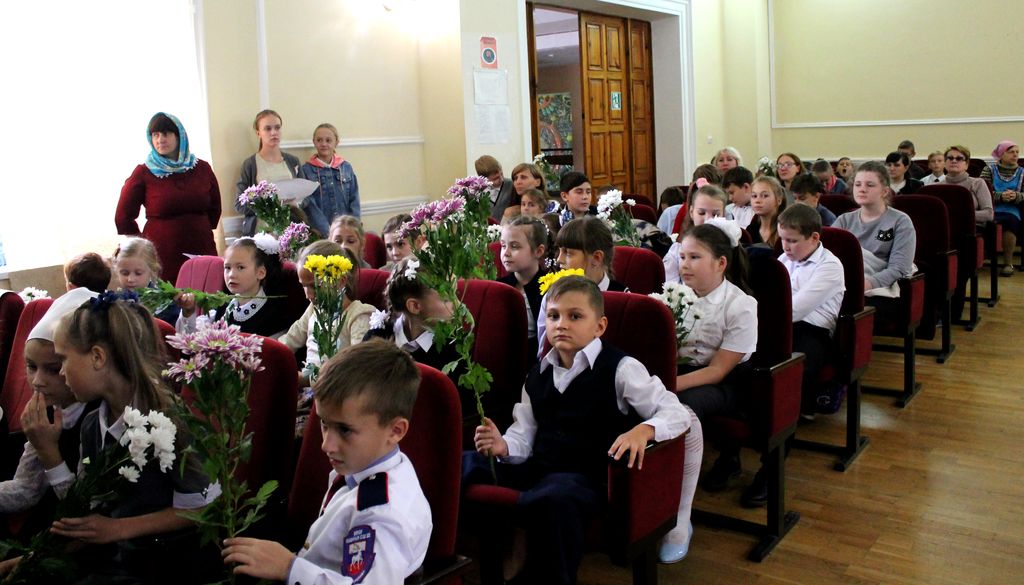 В этот день все настраивало детей на учебный лад. Со сцены прозвучали напутствия и были подарены подарки первоклассникам. Вниманию зрителей были представлены поучительные сценки, стихи и песни. В завершение мероприятия старшеклассники показали инсценировку «Благословение отрока Варфоломея» по житию святого преподобного Сергия Радонежского.