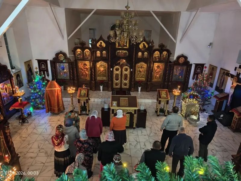 В ночь с 31 декабря 2025 года на 1 января 2026 года в храме преподобномученицы Елисаветы города Гуково состоялось богослужение.