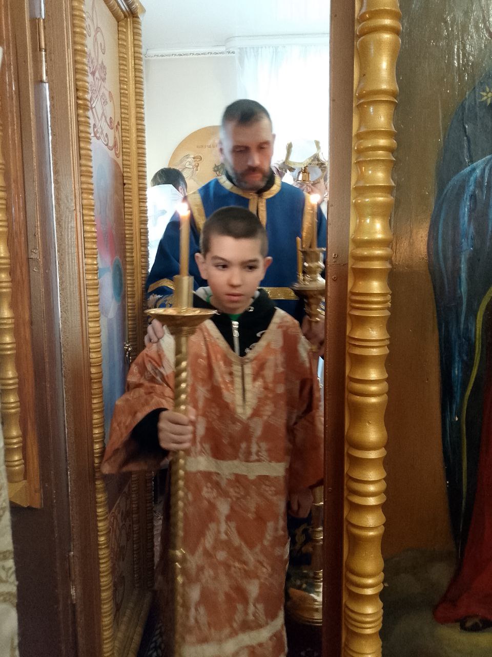 Песнопения исполнил хор храма под управлением матушки Натальи Жевердан. На сугубой ектении были вознесены особые прошения о Святой Руси. По окончании литургии состоялся чин Великого освящения воды.