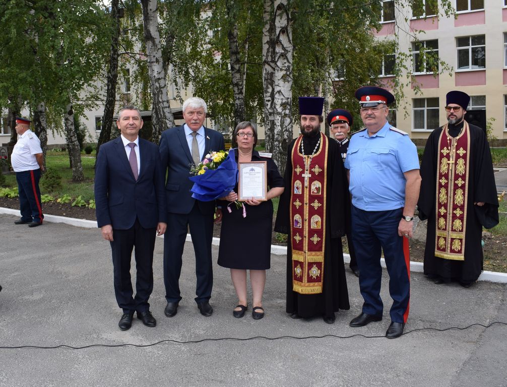 На праздничном мероприятии Сергий Яценко вручил педагогу кадетского корпуса Клюхиной Елене Васильевне благодарственное письмо епископа Шахтинского и Миллеровского Симона за организацию духовно-нравственного воспитания в рамках образовательного учреждения.