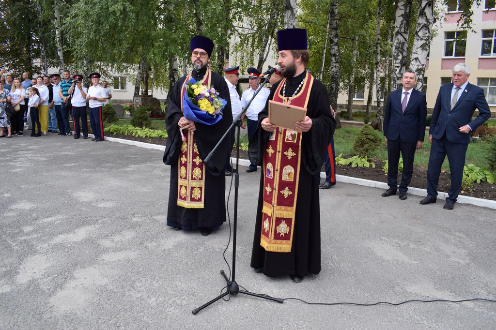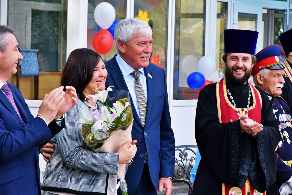 Также на праздник к юным воспитанникам школы-интерната прибыли председатель городской Думы — глава города Шахты Ирина Жукова, первый заместитель главы Администрации города Шахты Сергей Галкин. Председатель Отдела религиозного образования, благочинный приходов Александровск-Грушевского округа протоиерей Сергий Яценко, благословил кадетов и педагогов на новый учебный год, а настоятель Алексеевского Архиерейского подворья при казачьем кадетском иерей Евгений Поцелуев совершил окропление их святой водой.