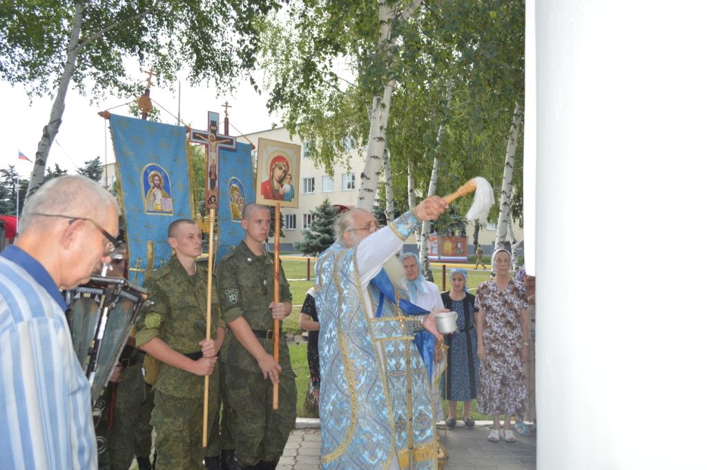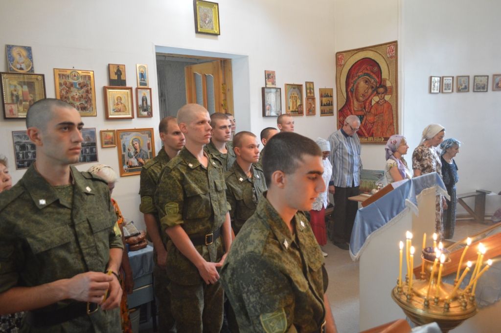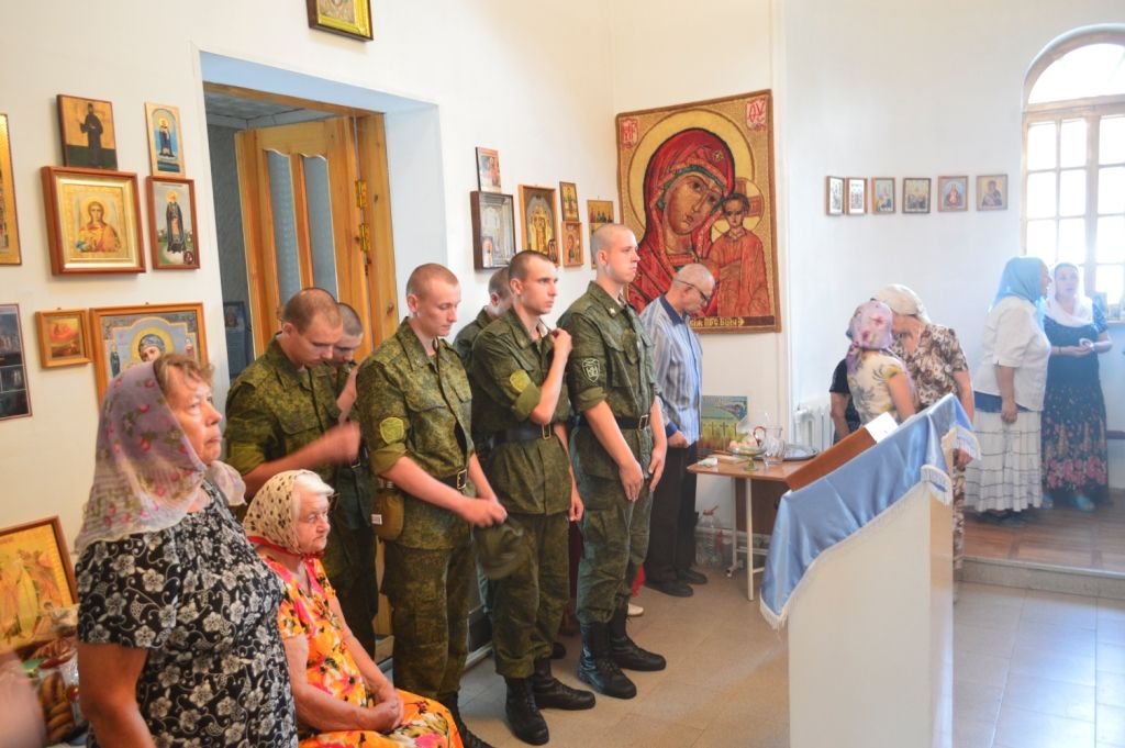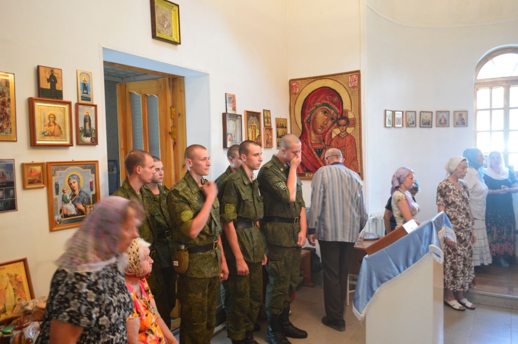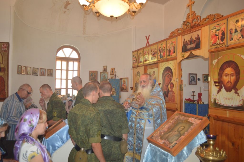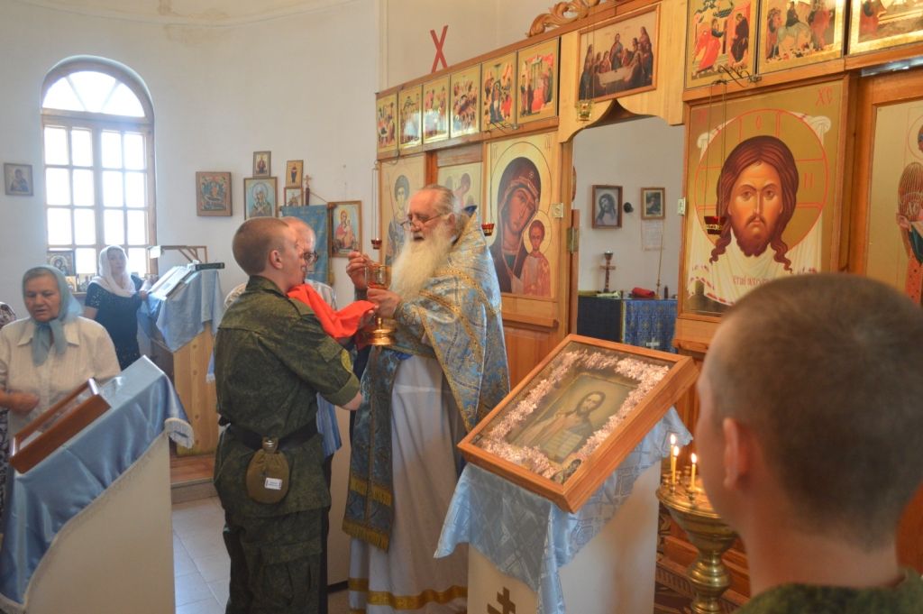 Совершив литургию, священник поздравил всех с престольным днем и пообщался с проходящими военную службу.