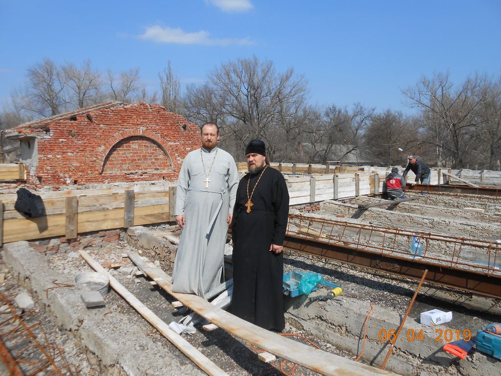 С ходом восстановительных работ ознакомился и благочинный приходов Новошахтинского округа протоиерей Роман Амплеев, стоявший у истоков образования прихода и храма.
