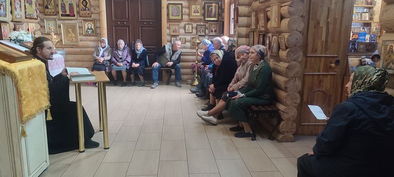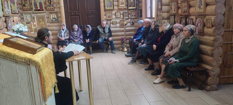 7 декабря 2025 года прошло очередное собрание, на котором прихожане вместе с преподавателем протоиереем Михаилом Борисенко разбирали заранее прочитанные библейские тексты. Важно, что при изучении Писания участники активно обращаются к толкованиям святых отцов Православной Церкви.