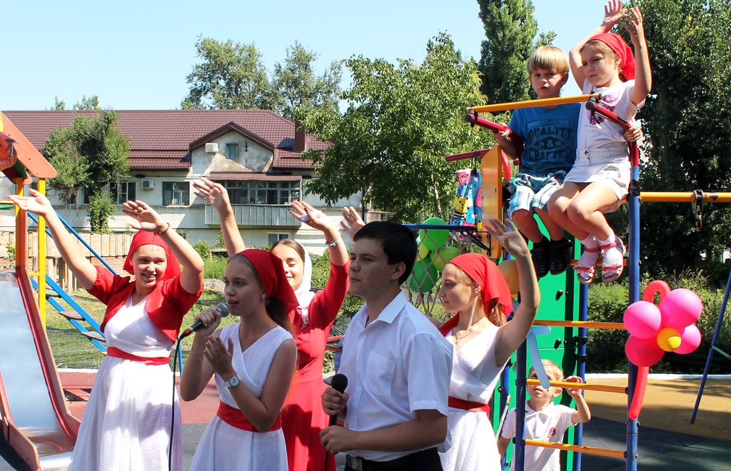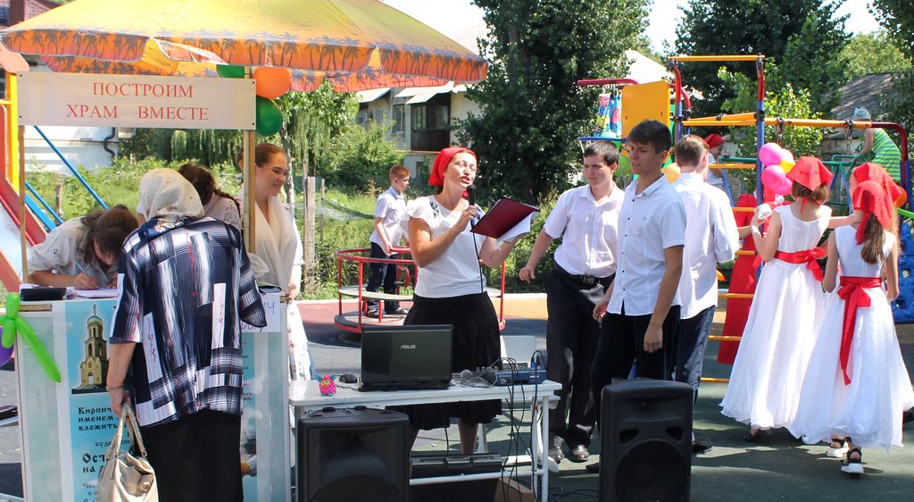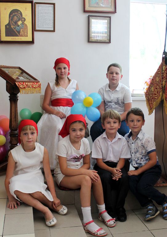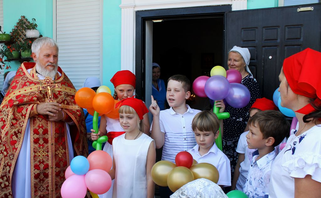 По окончании Богослужения всем присутствующим хлебосольные хозяйки предложили праздничную трапезу. А силами детского хора был организован благотворительный концерт «Построим храм вместе», где каждый желающий мог приобрести именной кирпичик для строительства нового большого храма в честь святого великомученика и целителя Пантелеимона.