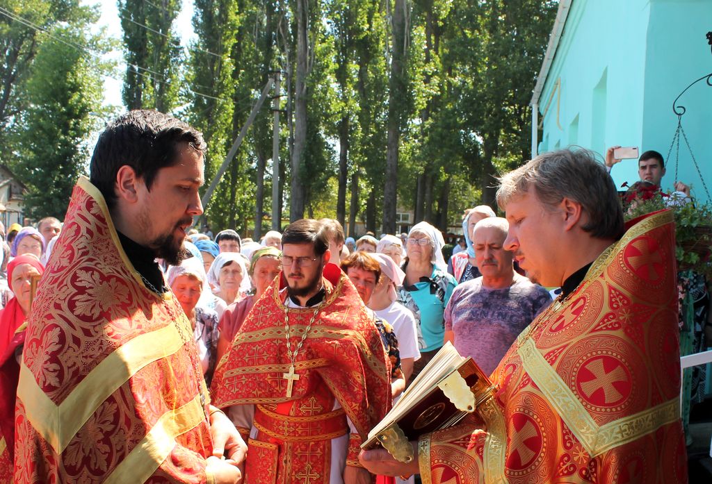 К этому дню храм преобразился. С любовью украшенные цветами храмовые иконы, красные облачения, как на пасху Христову, добавили еще больше торжественности и ликования в атмосферу праздника. Соборное моление совершили благочинный Гуковского округа протоиерей Виктор Ольховатов, настоятель храма Казанской Божией Матери протоиерей Николай Быков, настоятель храма великомученика Пантелеимона иерей Олег Бурлаков, настоятель прихода великомученицы Варвары иерей Александр Осяк, настоятель храма преподобномученицы Елисаветы иерей Георгий Русинов и настоятель Преображенского храма с. Займо-Обрыв Азовского района иерей Иоанн Молчанов.