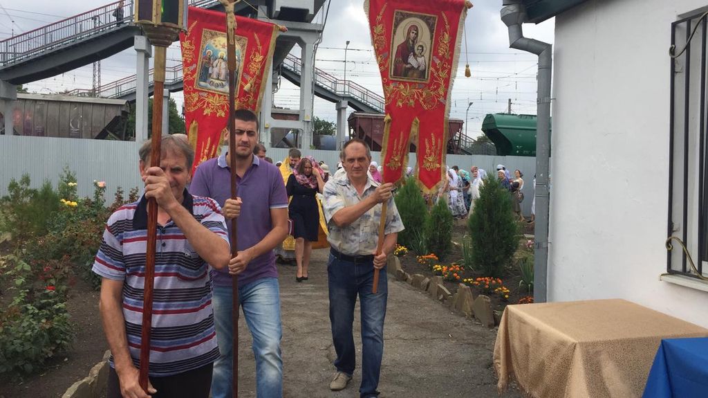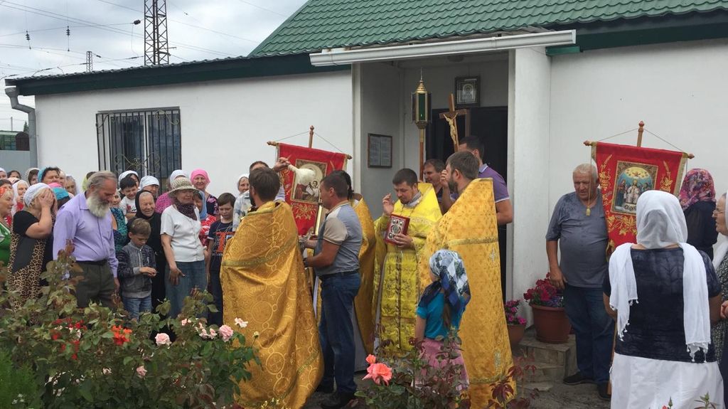 В завершение праздничной службы был совершен крестный ход вокруг храма, после чего всех гостей и прихожан храма угостили праздничной трапезой.