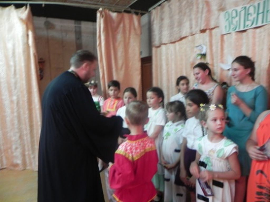 В заключение концерта протоиерей Роман поблагодарил выступавших и зрителей и раздал сладкие подарки детям.