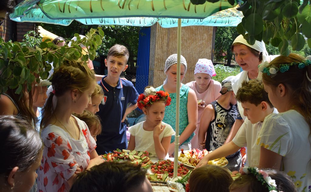 Из самых простых продуктов благодаря детским фантазии и умению появились необычные канапе, яблочные лебеди, фруктовая радуга и многое другое. Жаркая погода не стала помехой совместному творчеству, радости и хорошему настроению.