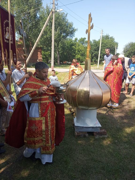В престольный праздник в храме великомученика и целителя Пантелеимона с. Павловка было совершено соборное богослужение и установка купола