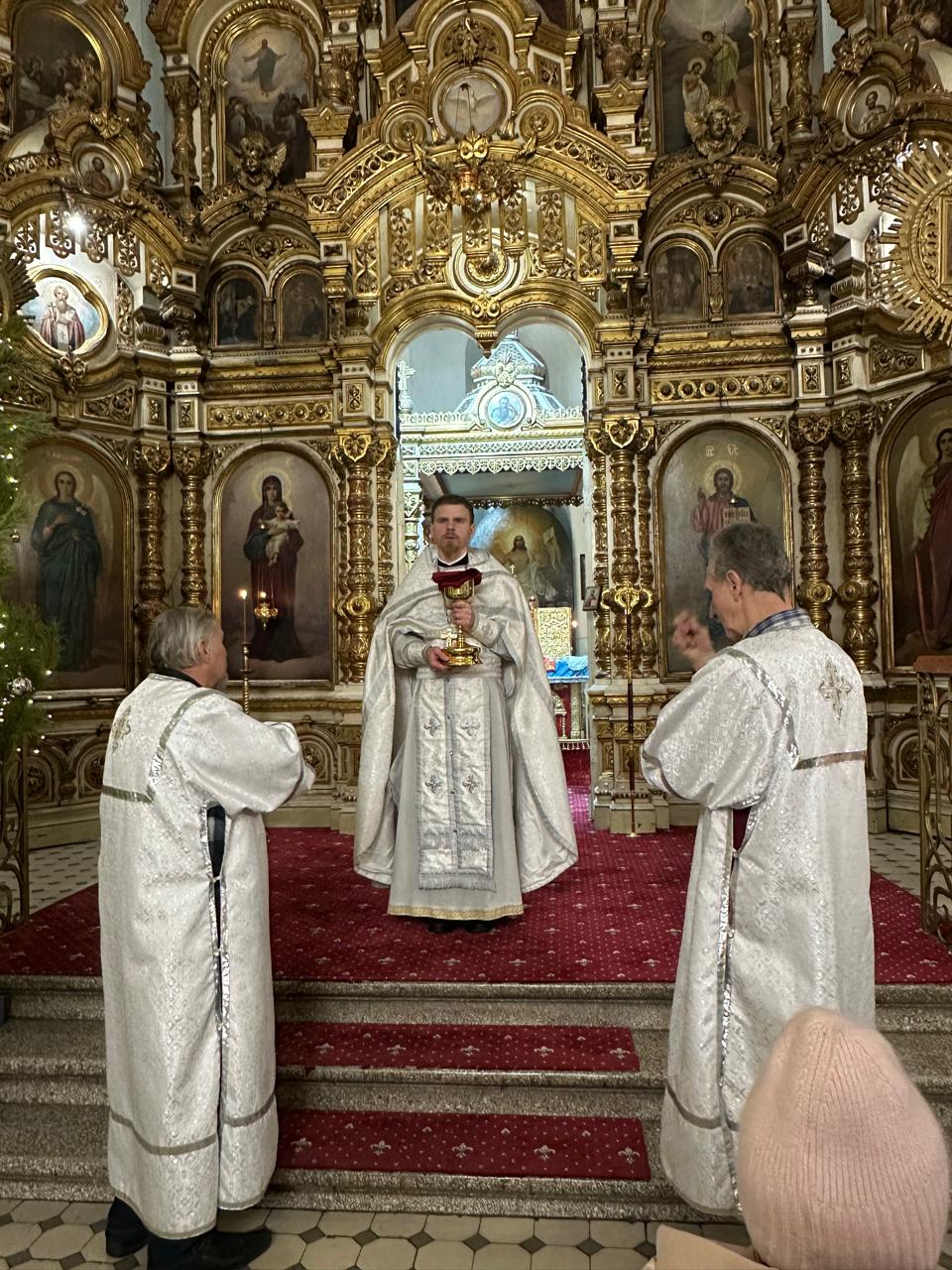 В ночь с 31 декабря на 1 января 2026 года настоятель храма Донецкого Успенского архиерейского подворья станицы Гундоровской протоиерей Глеб Гладышев совершил Божественную литургию.