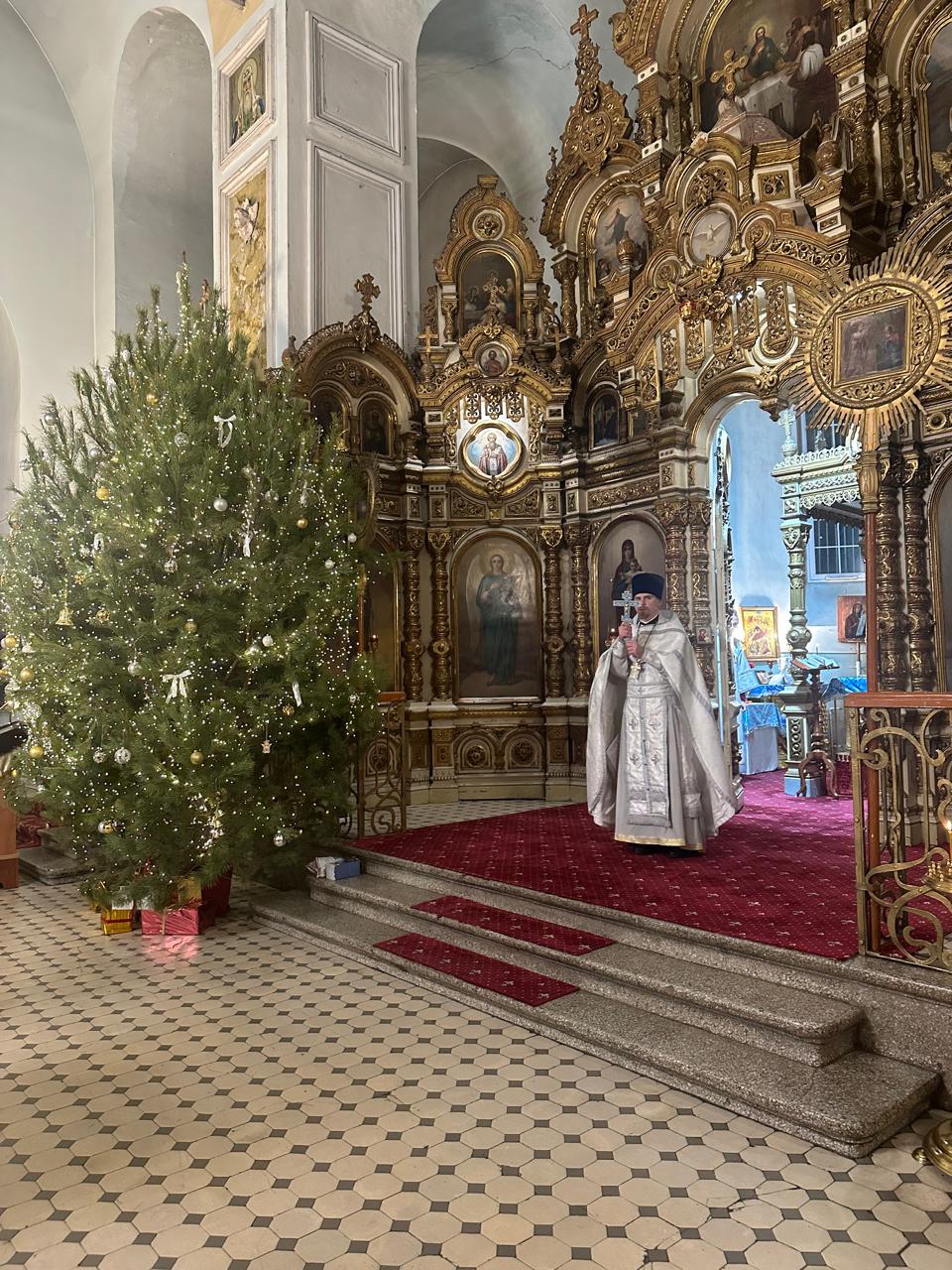 Отец Глеб поздравил прихожан с Новым годом, поблагодарил всех, кто пришёл в храм для общей молитвы в праздничную ночь, и обратился к собравшимся с проповедью.