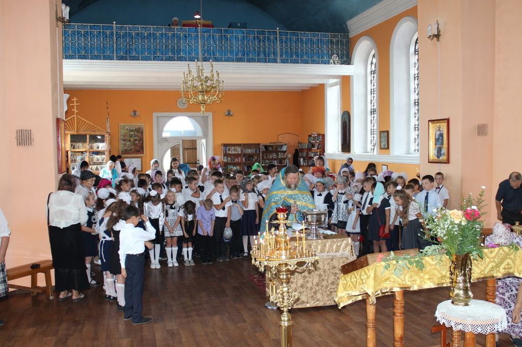 Храм посетили около двухсот детей. Священники прихода поздравили детей и учителей с началом учебного года, окропили их святой водой, пожелав помощи Божией и успехов в учении.