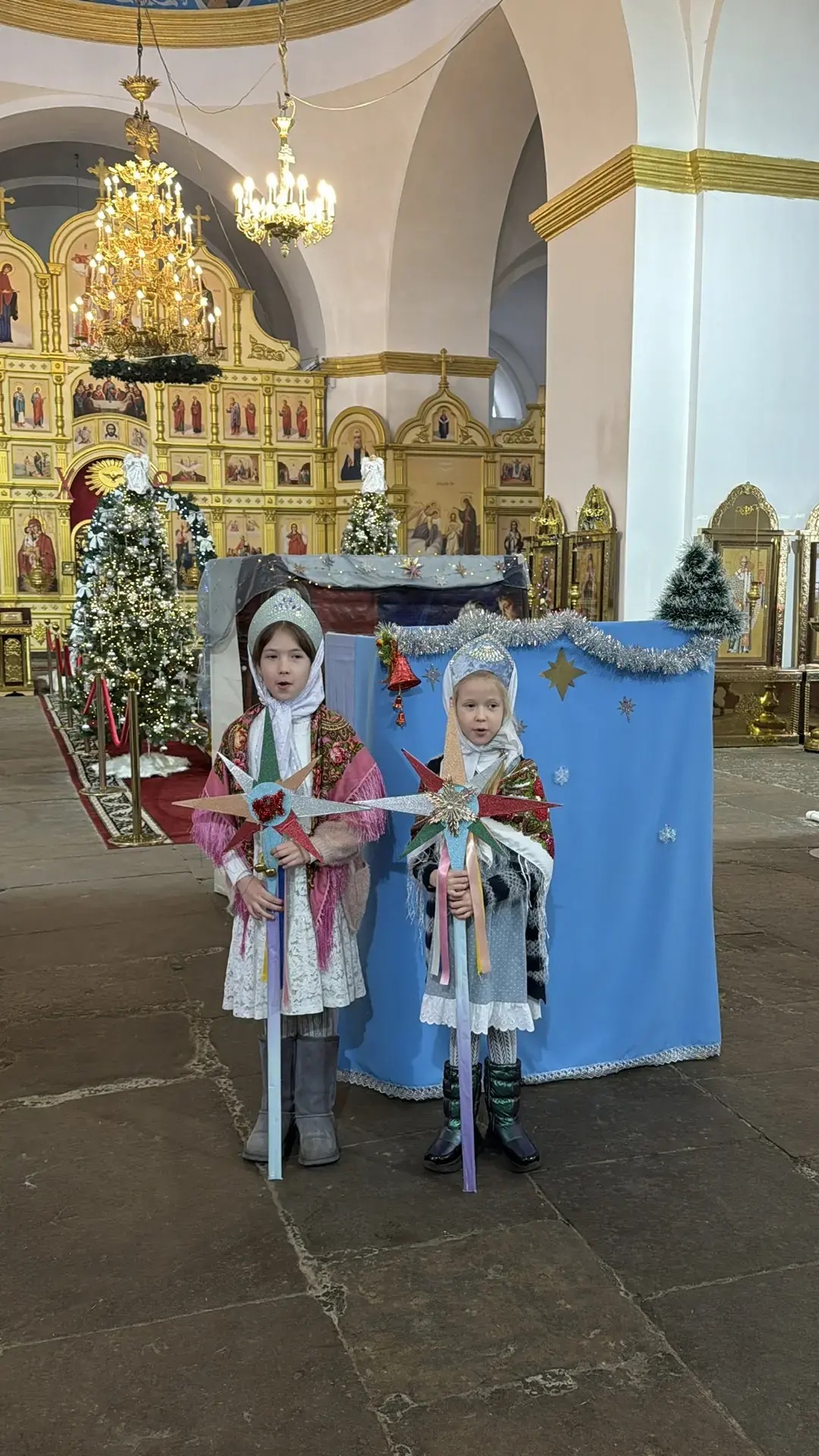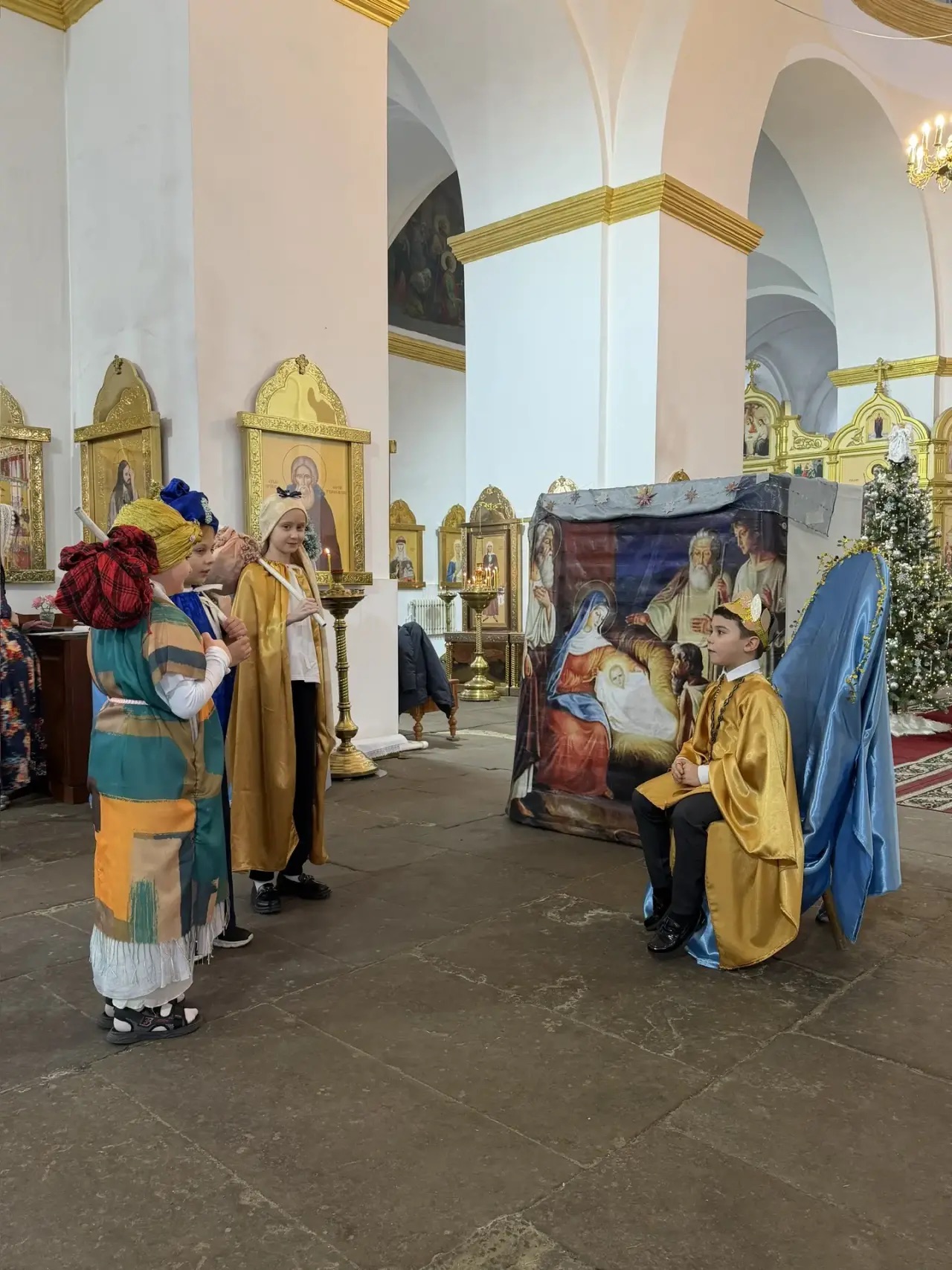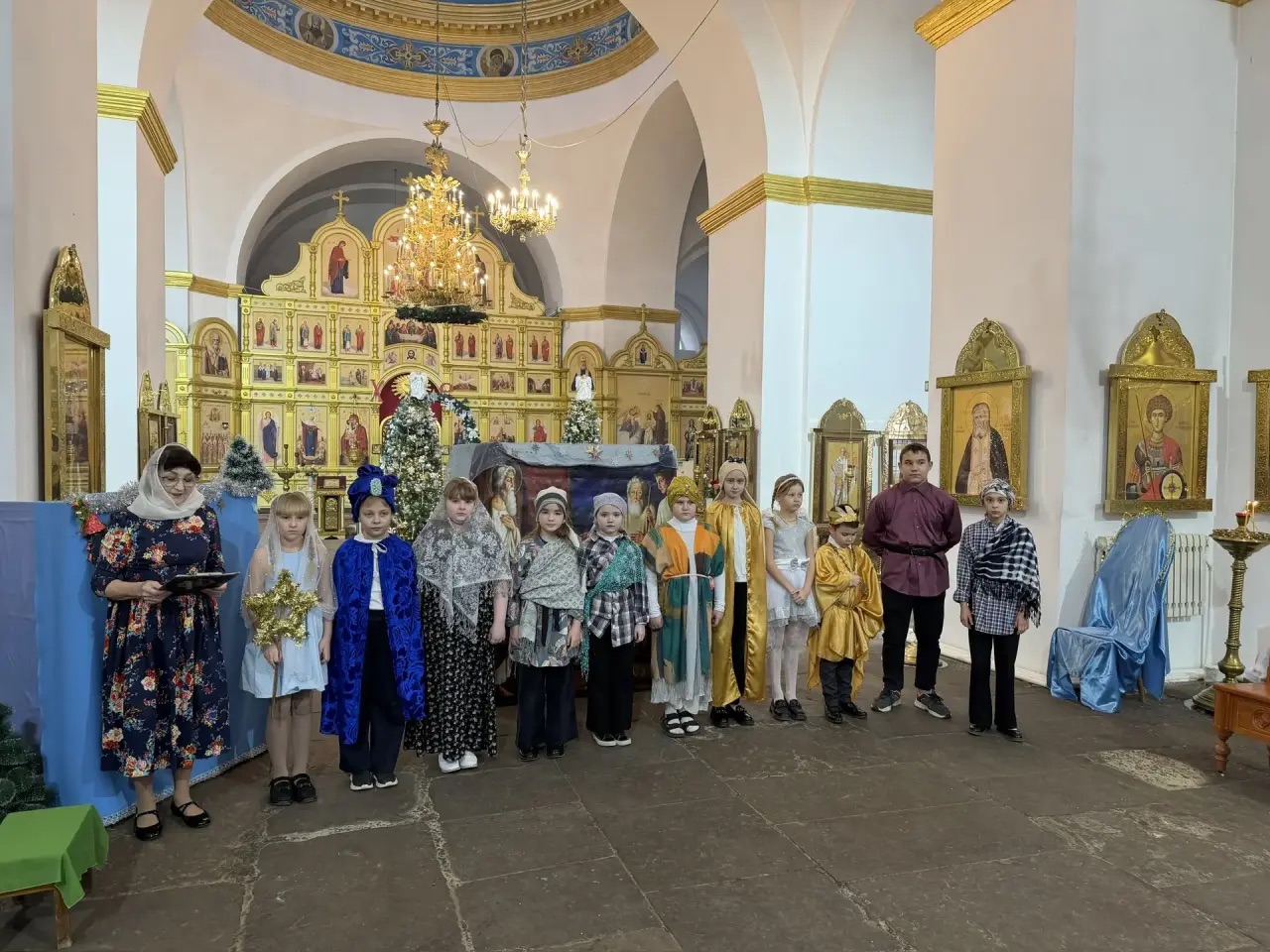 После воскресной литургии воспитанники воскресной школы поздравили настоятеля, прихожан и родителей праздничным концертом. Дети представили театральные сценки, исполнили колядки и прочитали стихи, передав благую весть о рождении Спасителя.