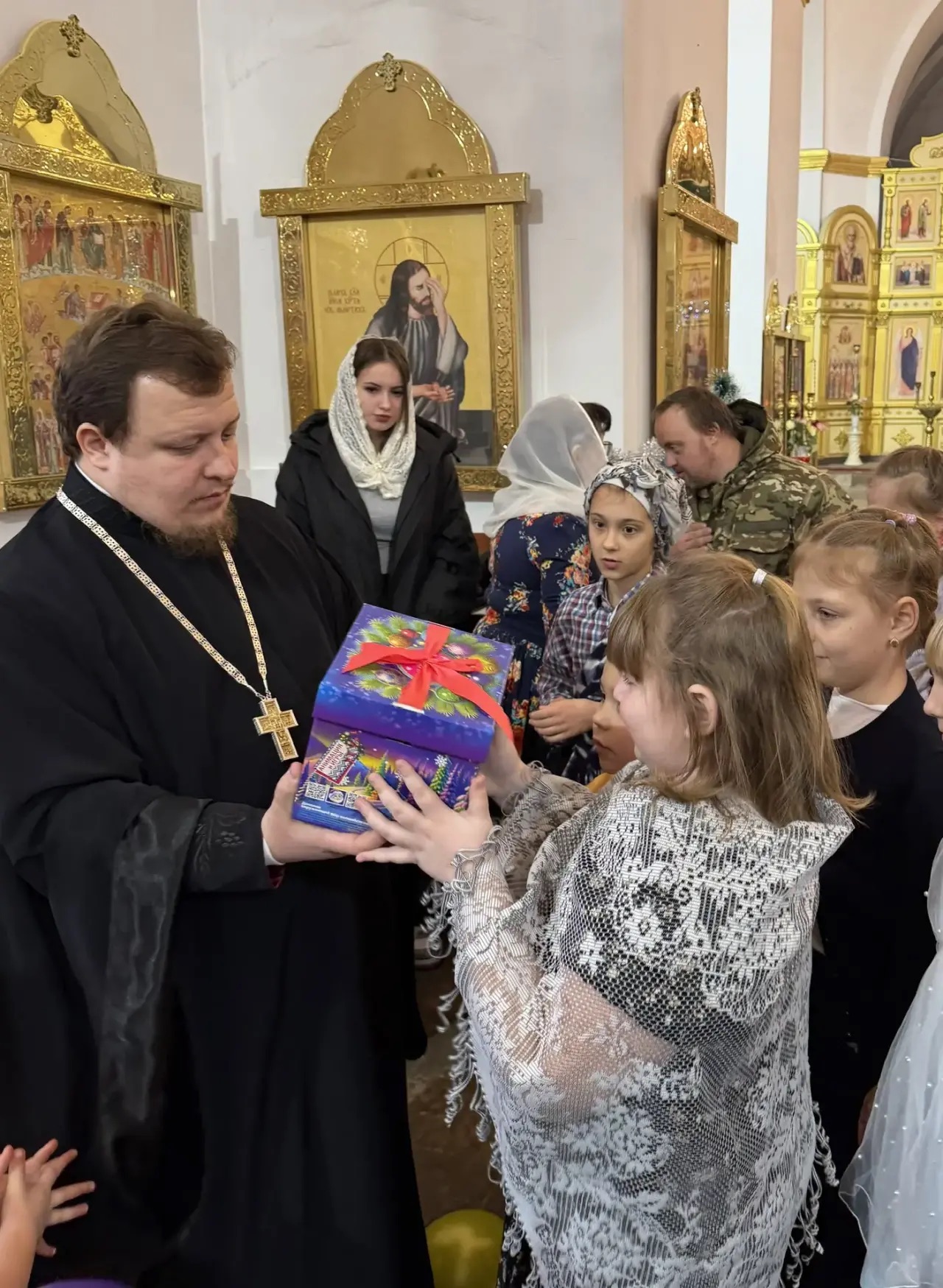 Настоятель храма иерей Игорь Лосев поздравил всех с праздником и вручил детям сладкие подарки.