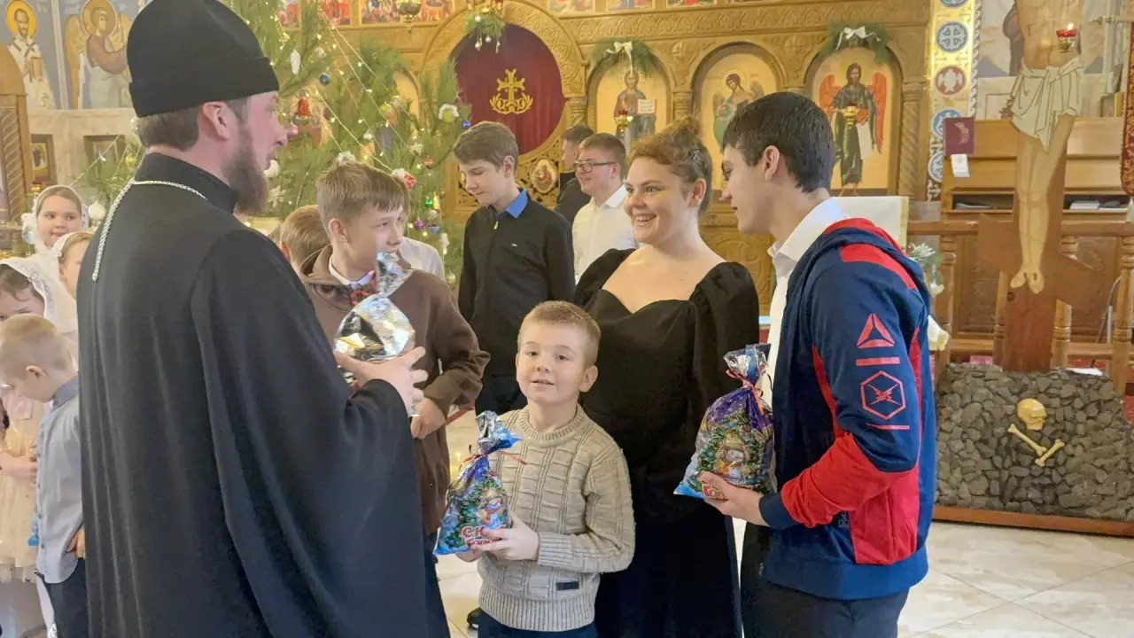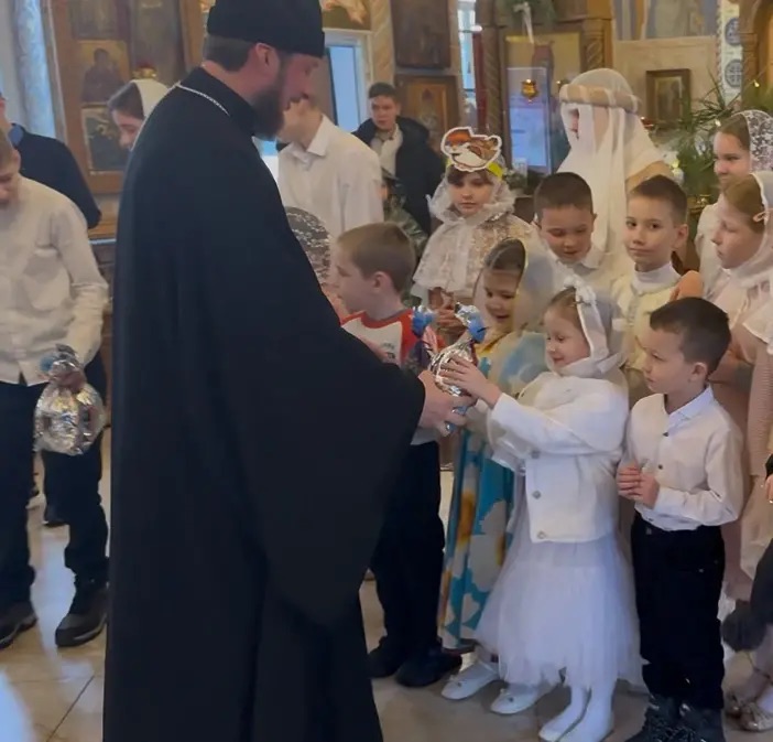 По завершении праздничного концерта и поздравлений отец Александр поблагодарил всех детей за выступления и подарил всем подарки. По традиции все дети были приглашены к сладкому столу.
