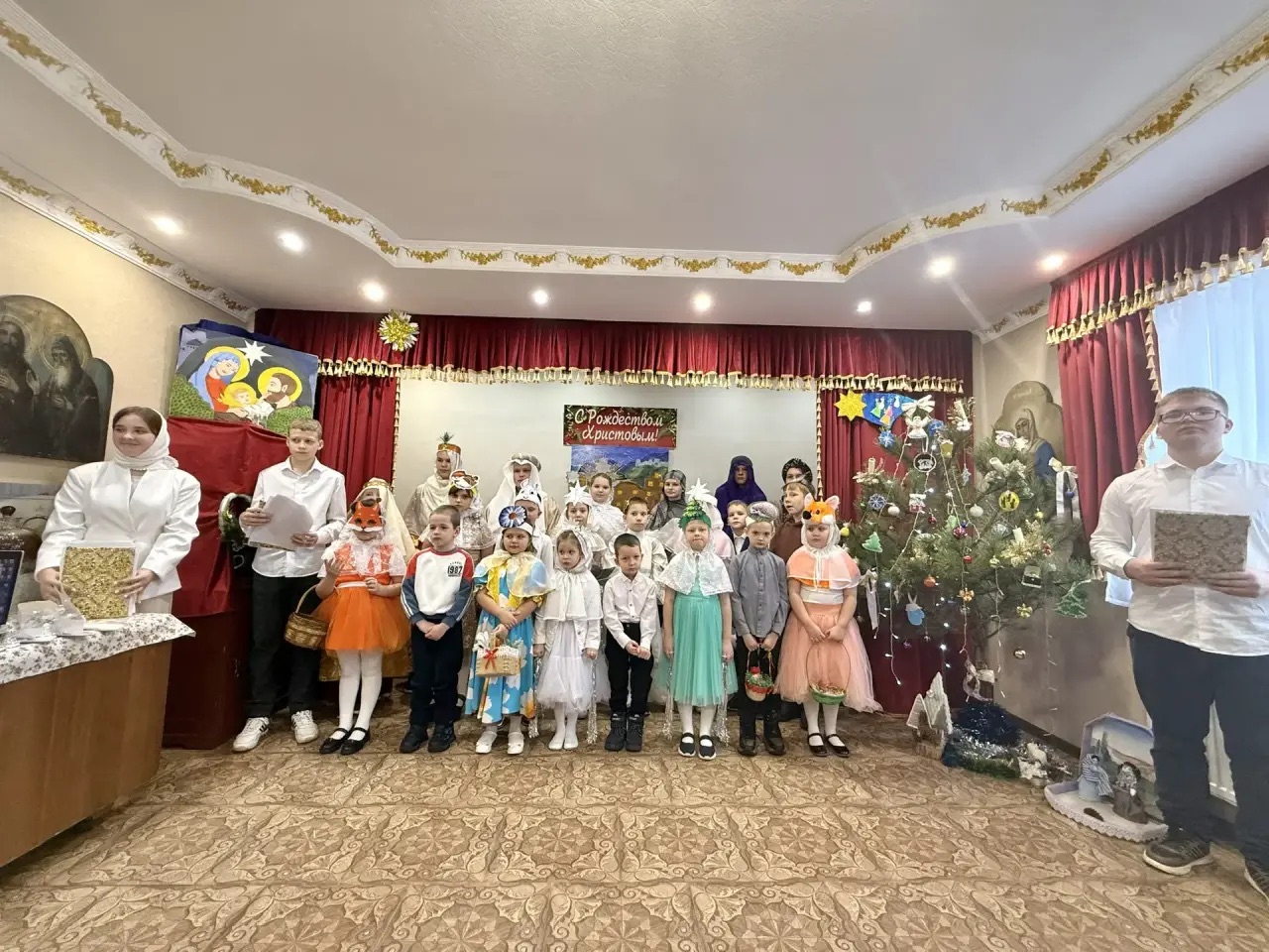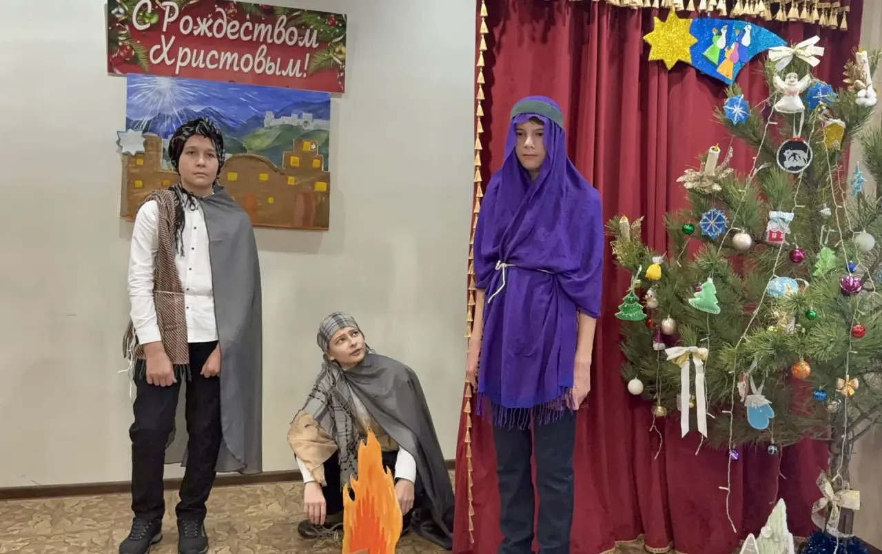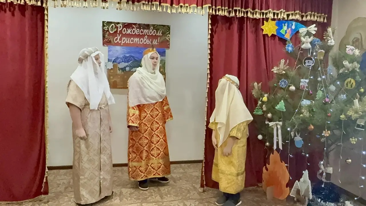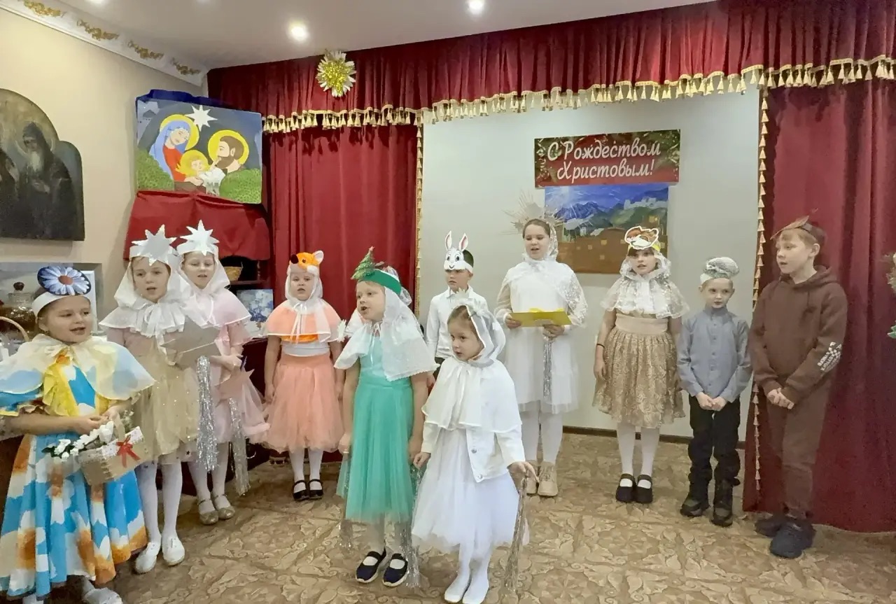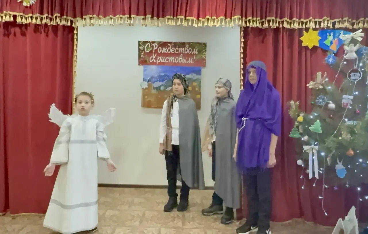 По благословению настоятеля храма иерея Александра Левчика трудами преподавателей в актовом зале храмового здания ученики воскресной школы поздравили своих родителей и прихожан с Рождеством Христовым.