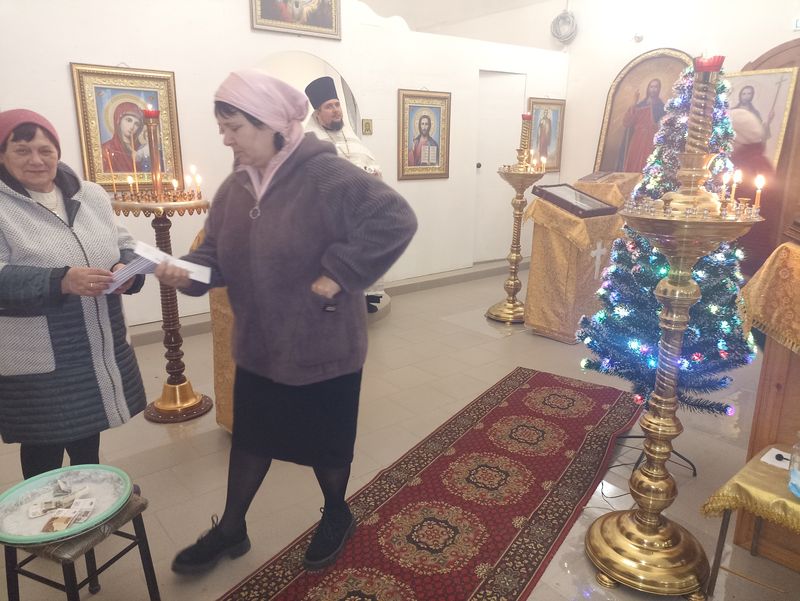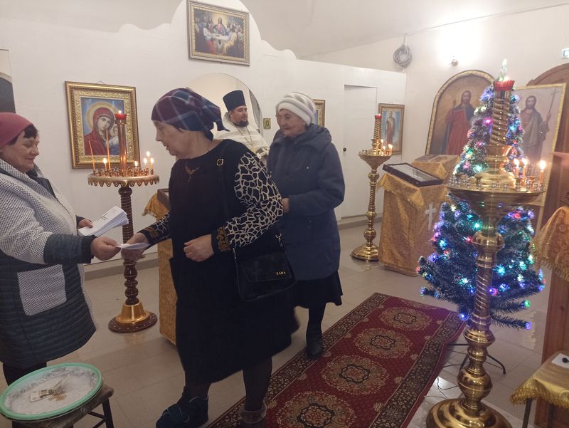 По окончании Божественной литургии священник и прихожане поздравили всех собравшихся со светлым праздником, пожелали крепкого здоровья и вручили тематические листовки нравственного содержания, посвящённые Рождеству Христову.
