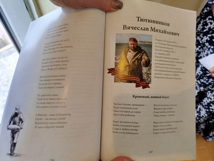 Татьяна Алексеева продемонстрировала книгу памяти «Они давали обещание вернуться...» сочинской поэтессы Елены Ивченко, в которой опубликовано стихотворение, посвященное нашему земляку Вячеславу Тютюнникову.