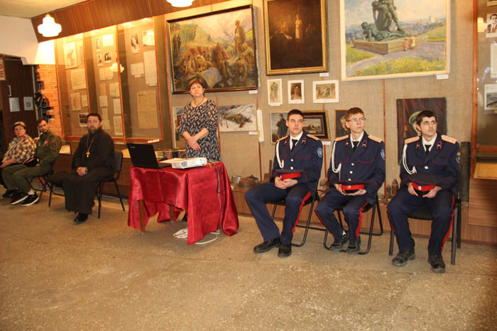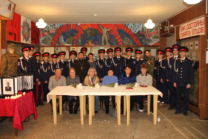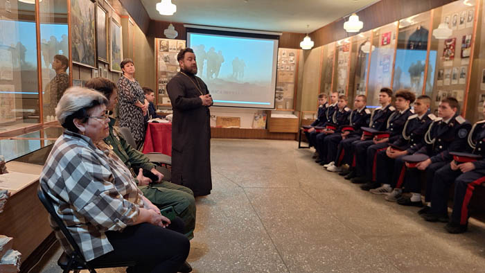 В мероприятии также приняли участие участник СВО Иван Ткачук, настоятель храма Апостола Андрея Первозванного иерей Симеон Есин, советник директора по воспитанию Миллеровского казачьего кадетского техникума Сурен Уришанян и воспитатель Нина Завгородняя, коллектив музея.