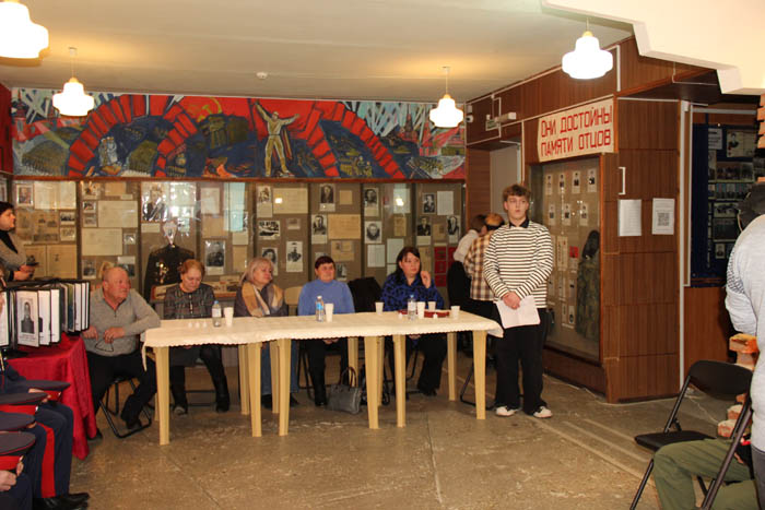 Открыл час памяти видеоролик «Быть воином — жить вечно». После просмотра организатор мероприятия, сотрудник музея Татьяна Алексеева отметила, что наши земляки, погибшие при выполнении боевых задач специальной военной операции, с честью выполнившие свой долг по защите Родины, должны навсегда остаться в памяти народной. И наша задача – не предать забвению их подвиг.