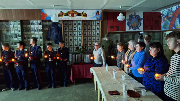 В завершении часа памяти гости и участники зажгли поминальные свечи, посмотрели трогательный музыкальный видеоролик «Летят в бессмертье журавли», где обращенные в крылатых птиц бессмертные души героев – миллеровцев отправляются в небесное войско.