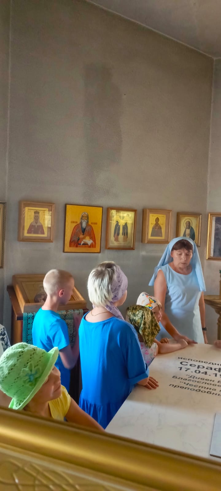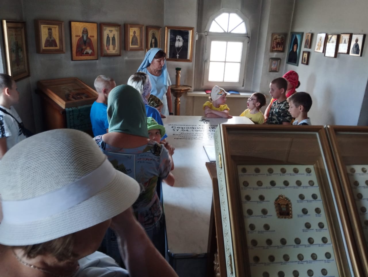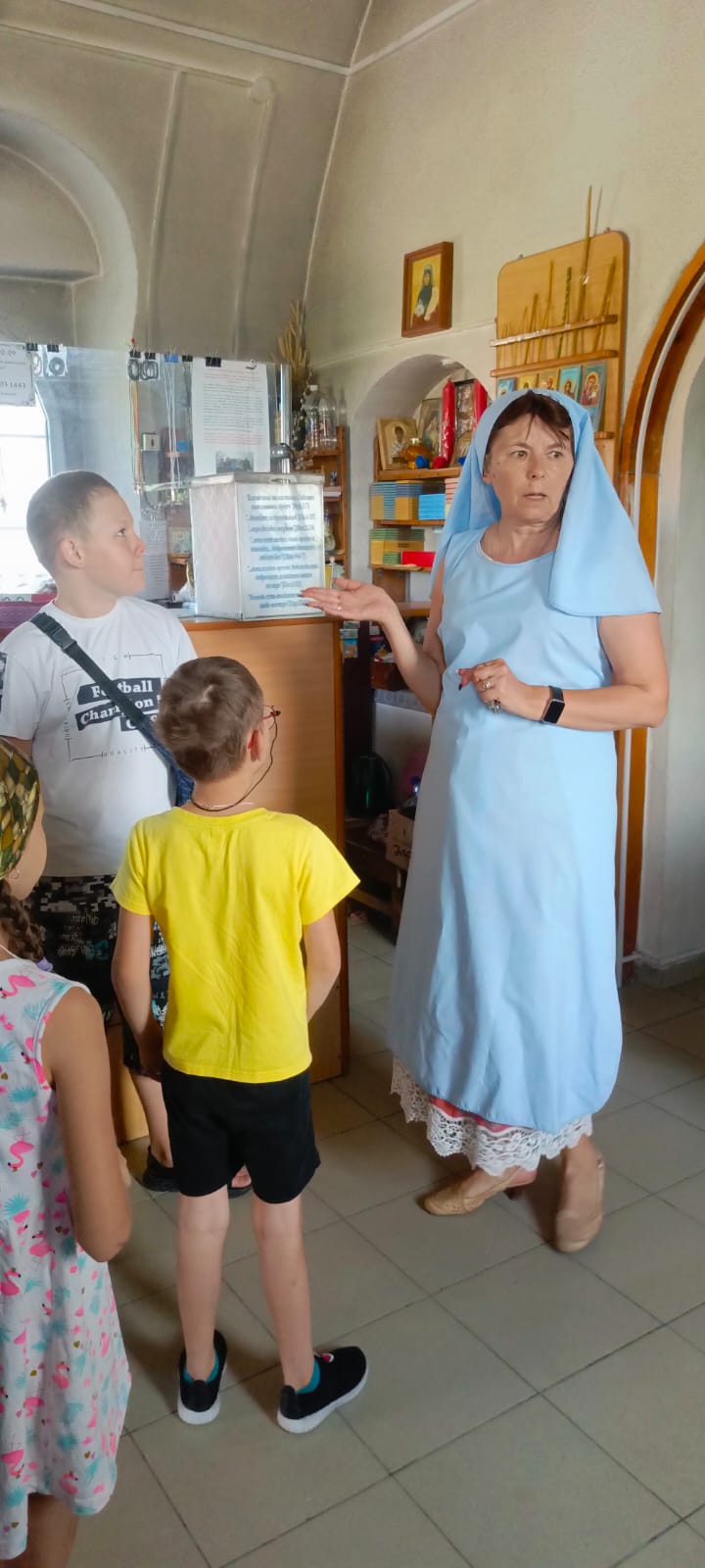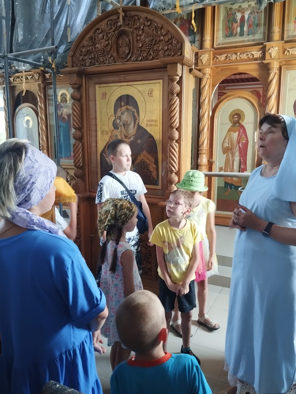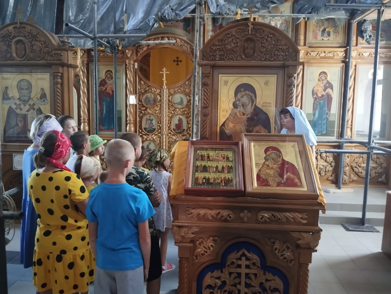 Во время экскурсии и духовной беседы, которую провела помощник благочинного, старшая сестра милосердия Донского храма, руководитель проекта «Круг спасения 2» Саханина Инна Викторовна, ребята и взрослые узнали об иконах и святых покровителях семьи, знаний и учений, а также о семейных ценностях и родословной.