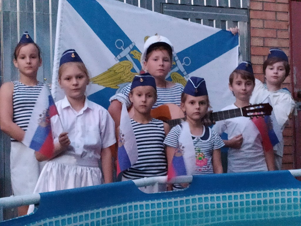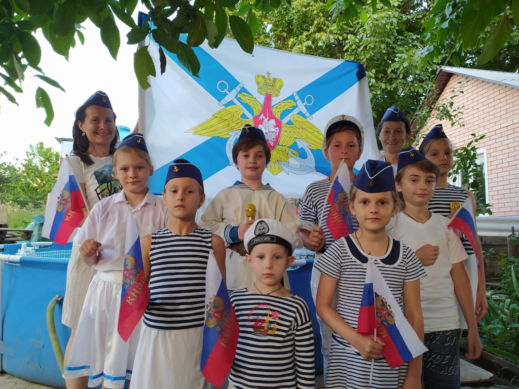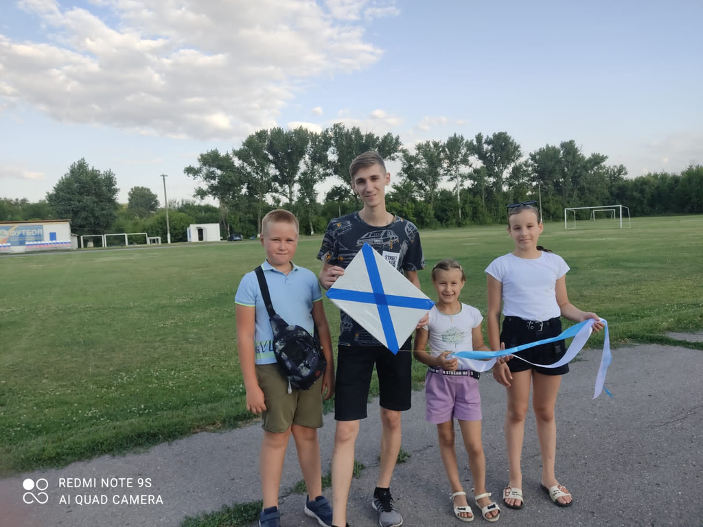 Дети подготовили видеоролик и исполнили песню «Экипаж – одна семья», рассказали об истории военно-морского флота и об Андреевском флаге, а также сделали своими руками и запустили в небо воздушного змея с изображением Андреевского флага.