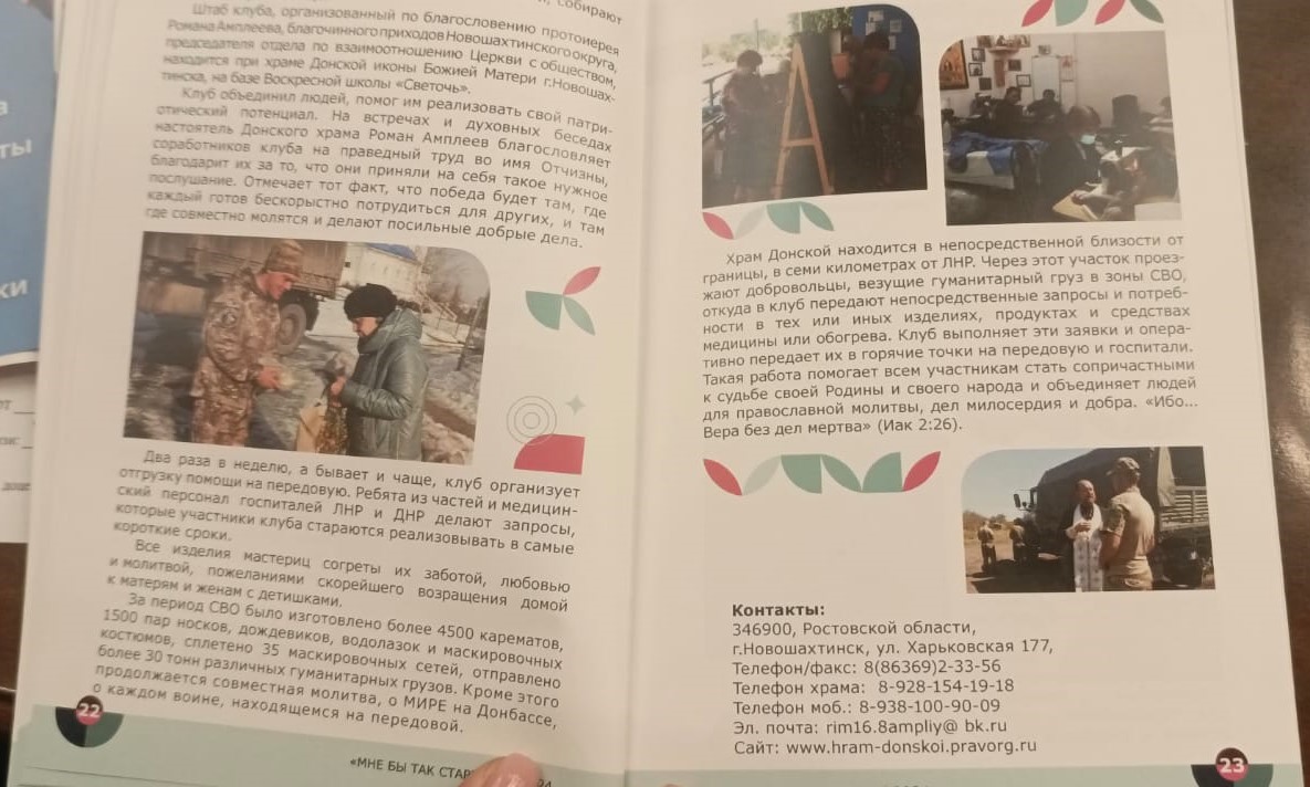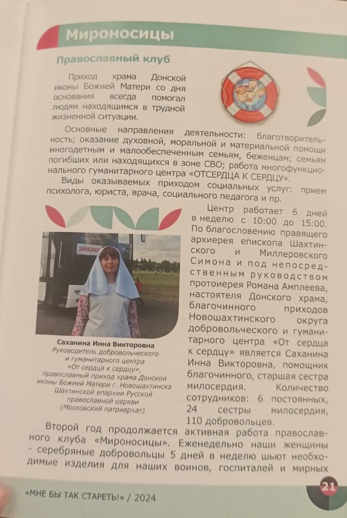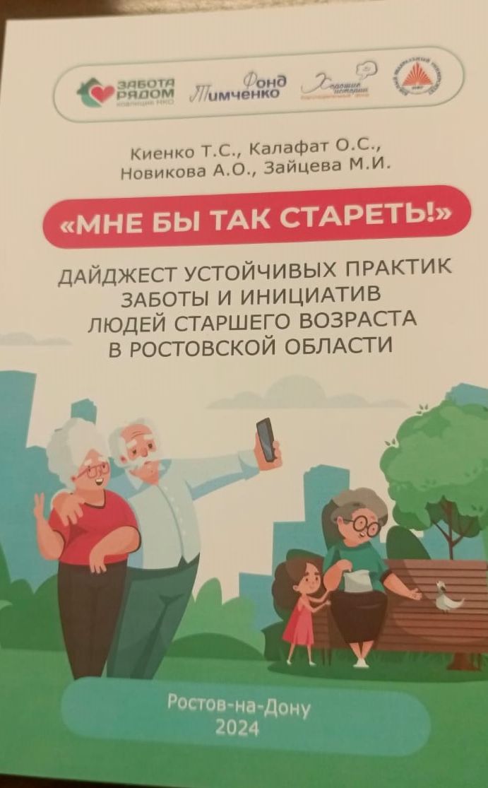 В ходе круглого стола всем соавторам был вручен сборник «Мне бы так стареть» дайджест устойчивых практик заботы и инициатив людей старшего возраста в ростовской области». В этот сборник вошла практика организации клуба «Мироносицы» Донского храма г. Новошахтинска, которая была оценена экспертами как лучшая.