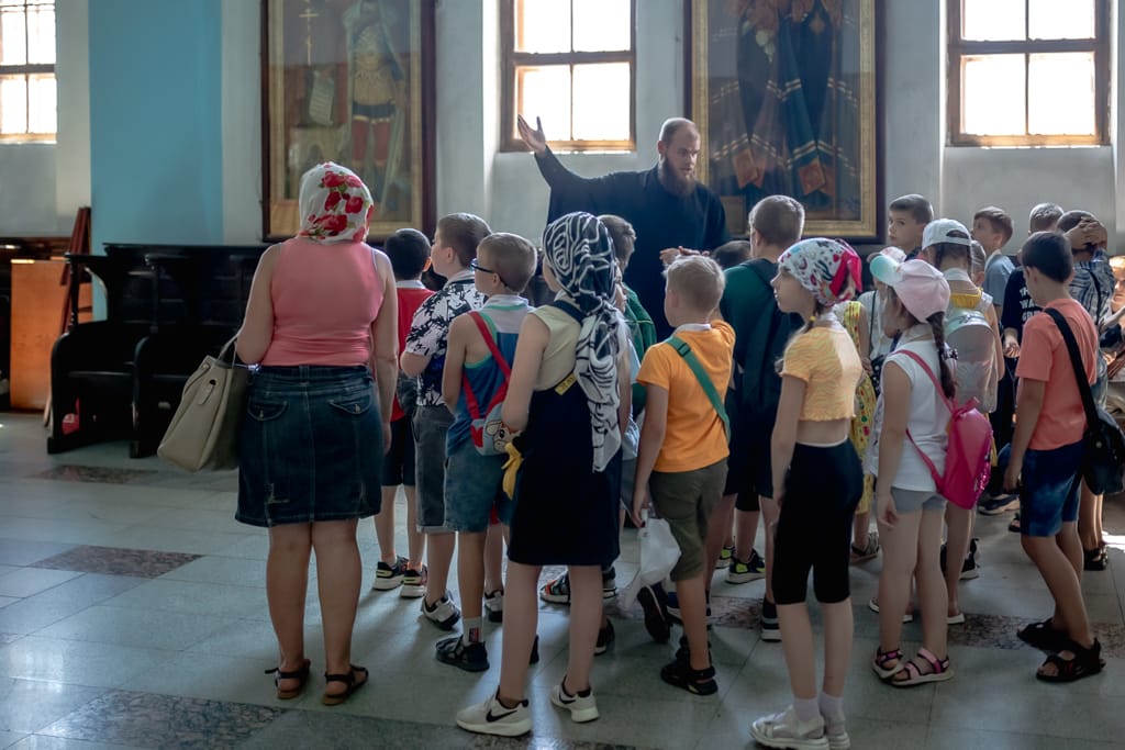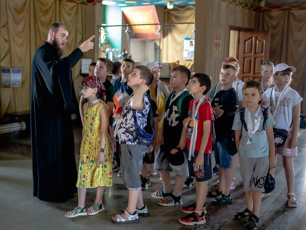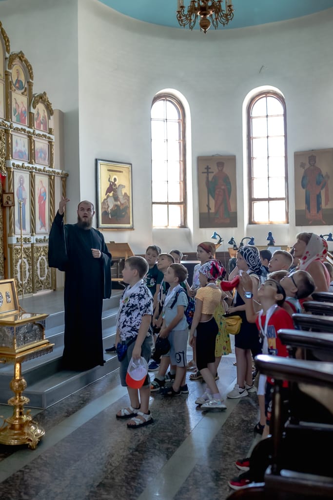 Священнослужитель рассказал детям о устройстве православного храма и о символическом значении его отдельных частей. Детей впечатлила сложная и драматическая история самого собора, они смогли увидеть своими глазами ход реконструкции, которая проходит в наши дни.