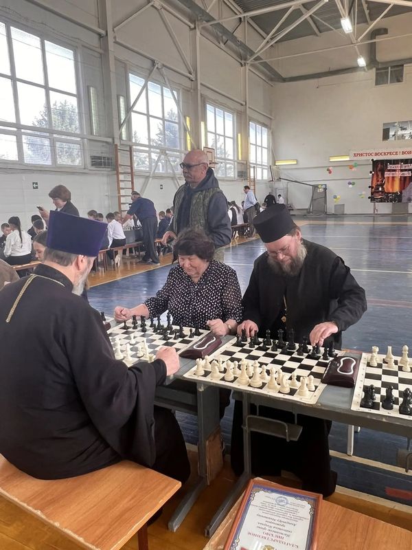 Во время торжественного открытия 12 Пасхального шахматного фестиваля священники и почетные гости поздравили ребят со Светлым Христовым Воскресением и пожелали успехов в учебе и спорте.